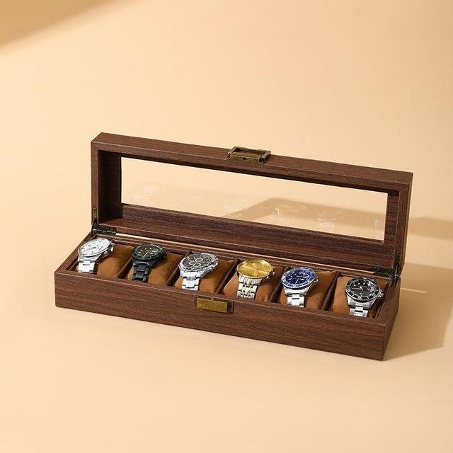 落ち着いた色味の木製収納ケースは大切な腕時計コレクションに相応しい安心感を与えます。シンプルですが、機能的なデザインは深さと直線にこだわり、上品と高級感を与えます。