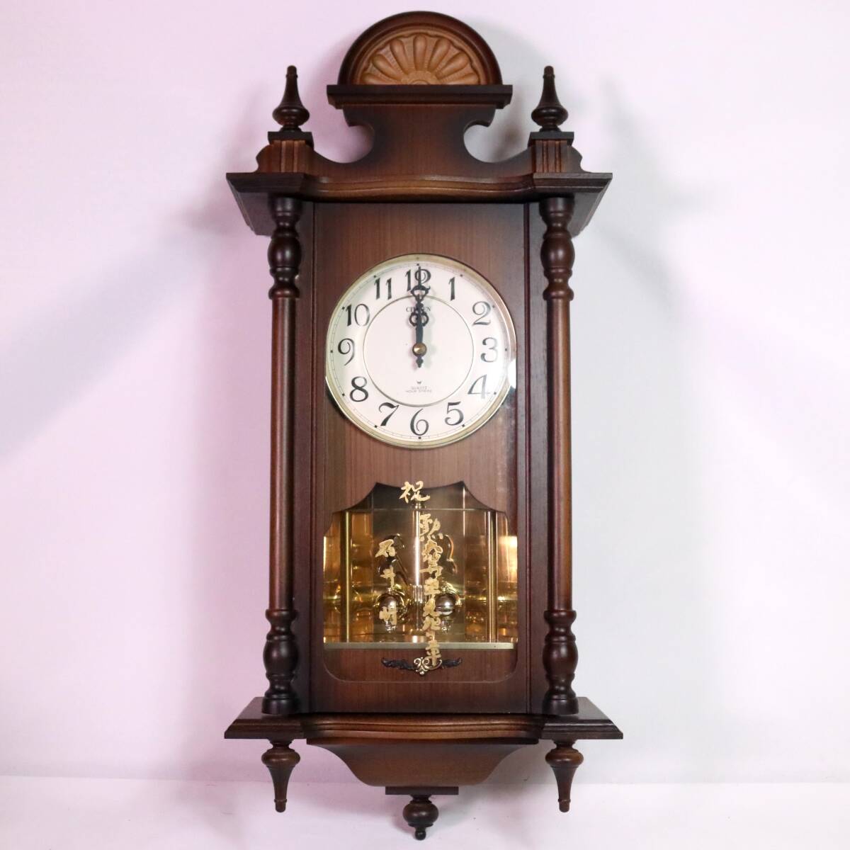 B1241 CITIZEN シチズン 柱時計 掛時計 振子時計 8MS315 アナログ 乾電池式 昭和レトロ アンティーク インテリア 動作未確認 現状品