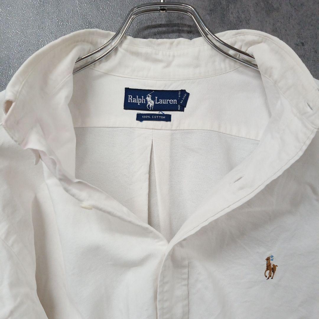 ラルフローレンの定番ホワイトシャツです。胸元にワンポイントのポニー刺繍が入ったシンプルで上品なデザイン。幅広いコーデに合わせやすく、カジュアルからきれいめまで活躍します。全体的に着用感や若干のシワ、薄汚れが見られますので、古着にご理解のある方へおすすめです