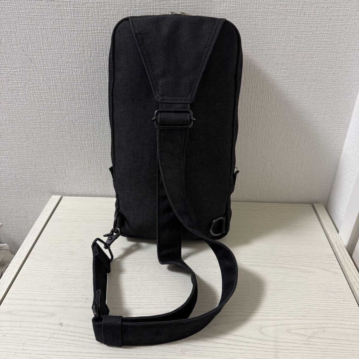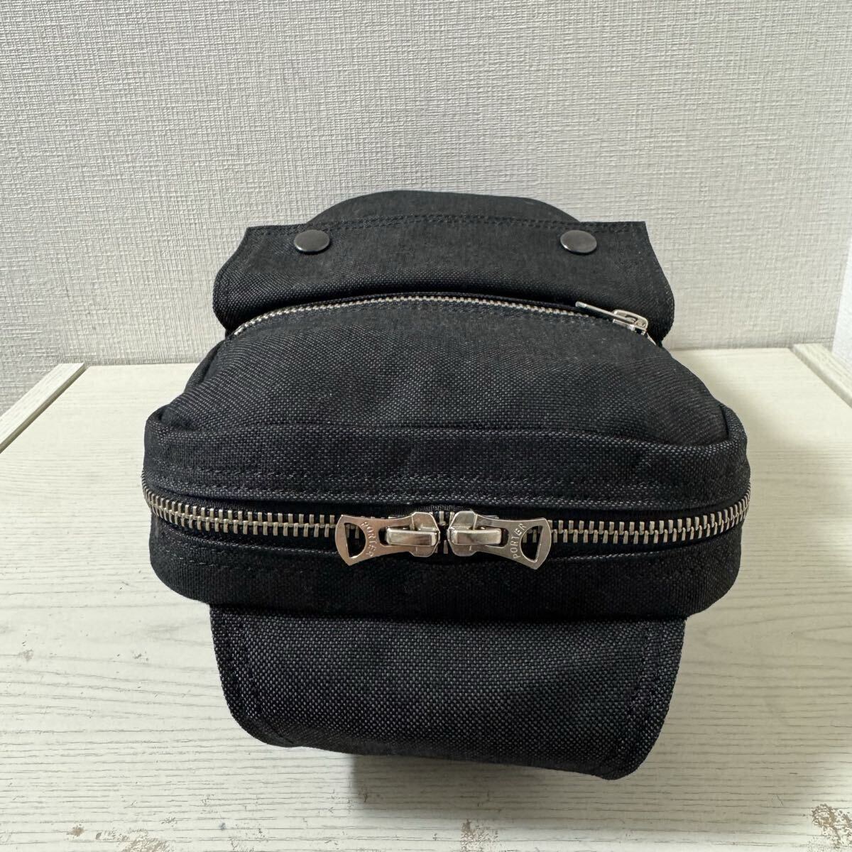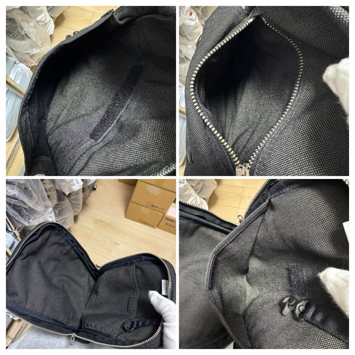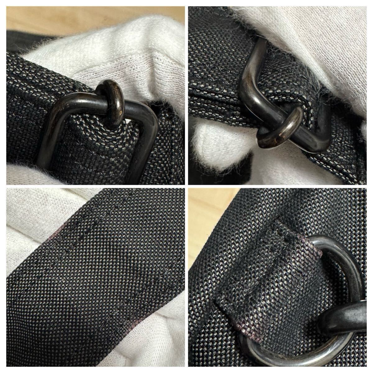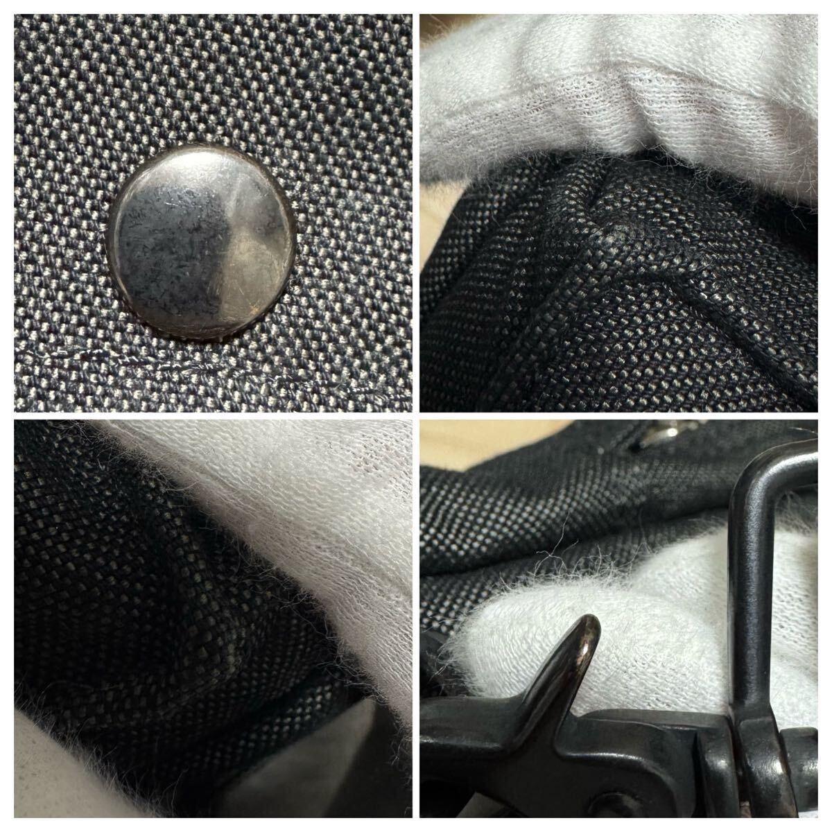 前ポケットのボタンと角に若干のスレ、ショルダー金具に若干のスレ、ショルダーと背面金具の接続生地に一部変色があります。(写真9、10枚目参照)