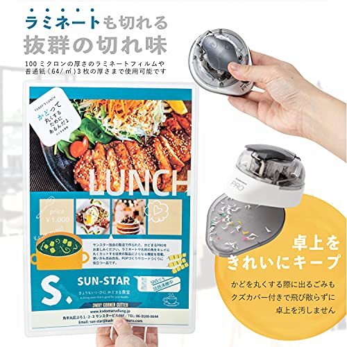 サンスター文具のかどまるPROは、ラミネートや名刺の角をキレイに丸くカットする従来の製品にさらなる機能を搭載したプロ仕様 用途に合わせて3mm、5mm、8mmの丸角カットから選択することが可能。 お手軽なお値段で、100ミクロンのファイルで加工されたラミネートもキレイに切れる抜群の切れ味。