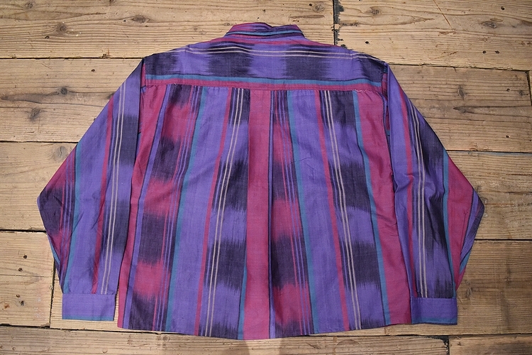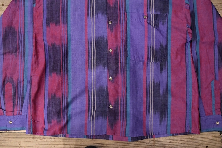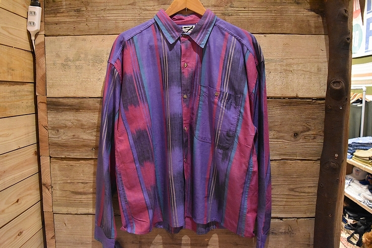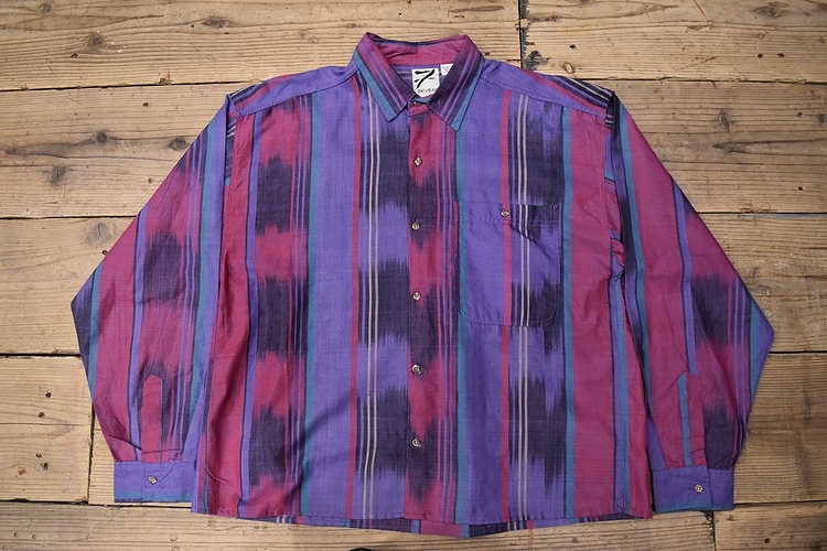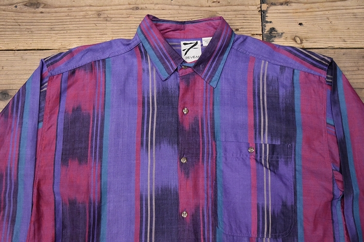 デッドストック品◎90sビンテージSEVENセブンオールコットン長袖総柄シャツLマルチカラーパープル系アメカジストリート t1059