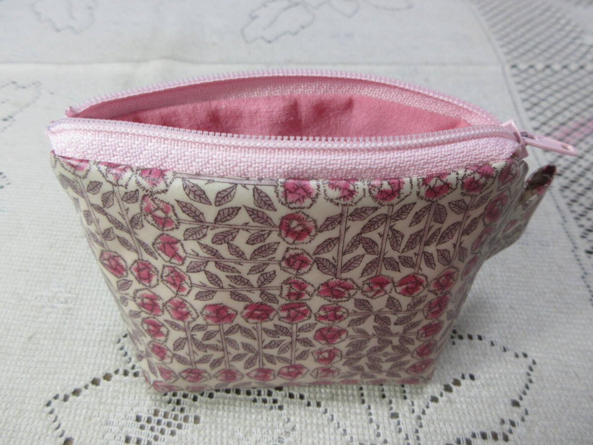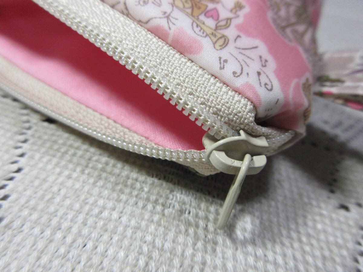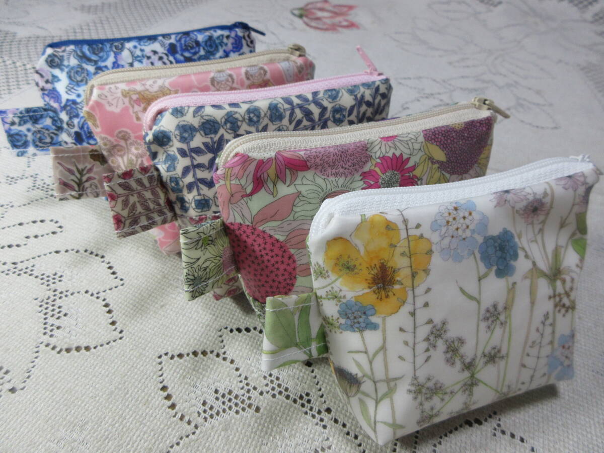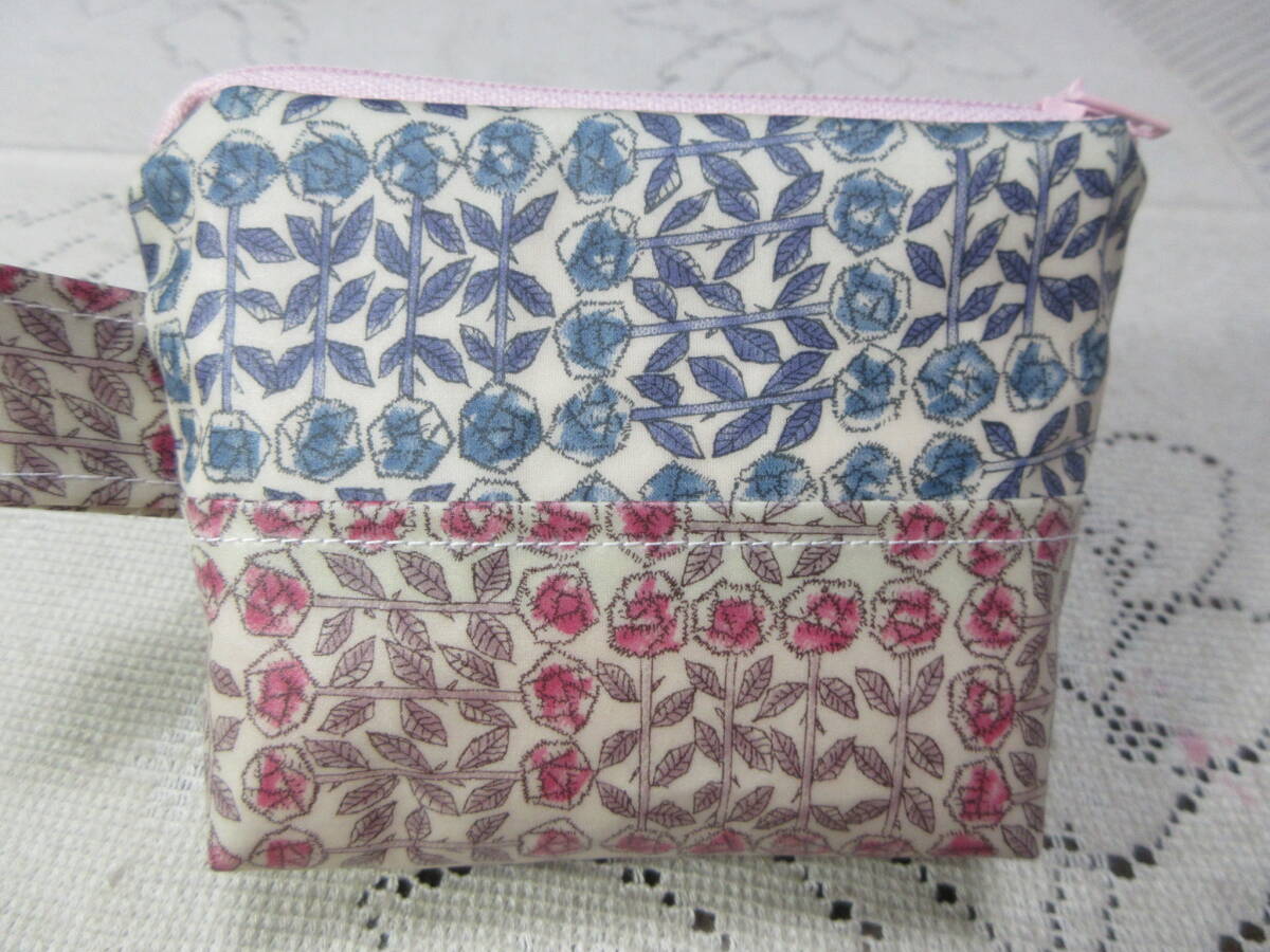 ハンドメイド リバティラミネートミニポーチ⑪ピンク×青  10-36