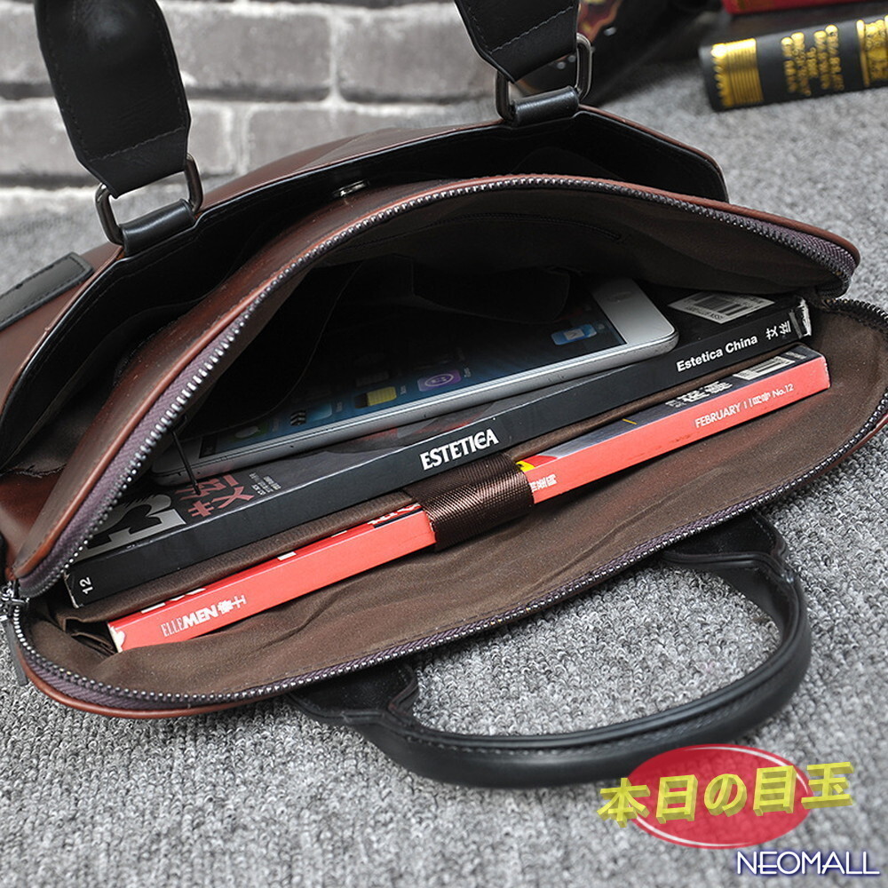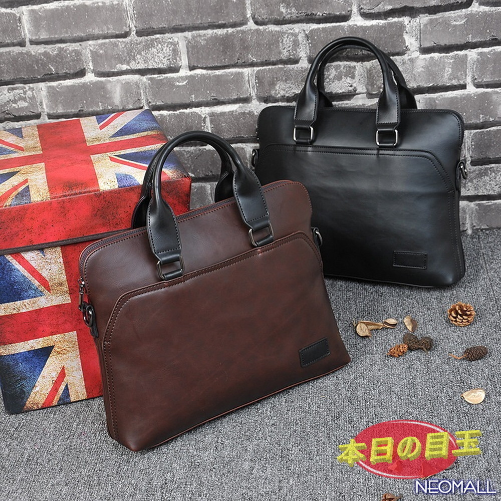 1円~ 新品 メンズ 高級PUレザー ビジネスバッグ【582】ブラウン ブリーフケース ショルダー スクエア 横型 大人気 上質 質感◎ 未使用