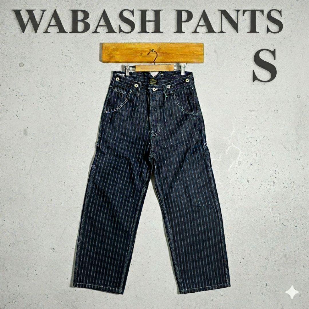 ストライプデザインのWABASH PANTS、サイズS、フロントボタン式でスタイリッシュなデニムパンツ。