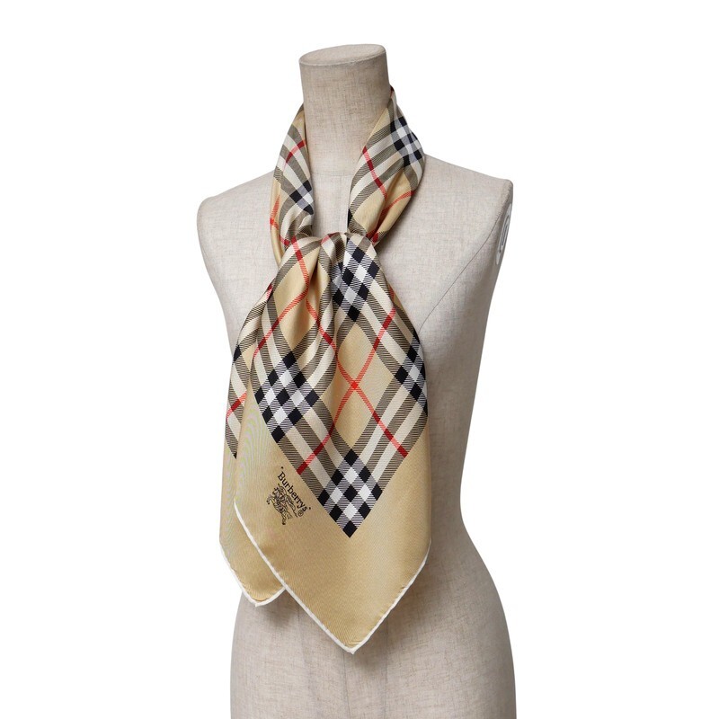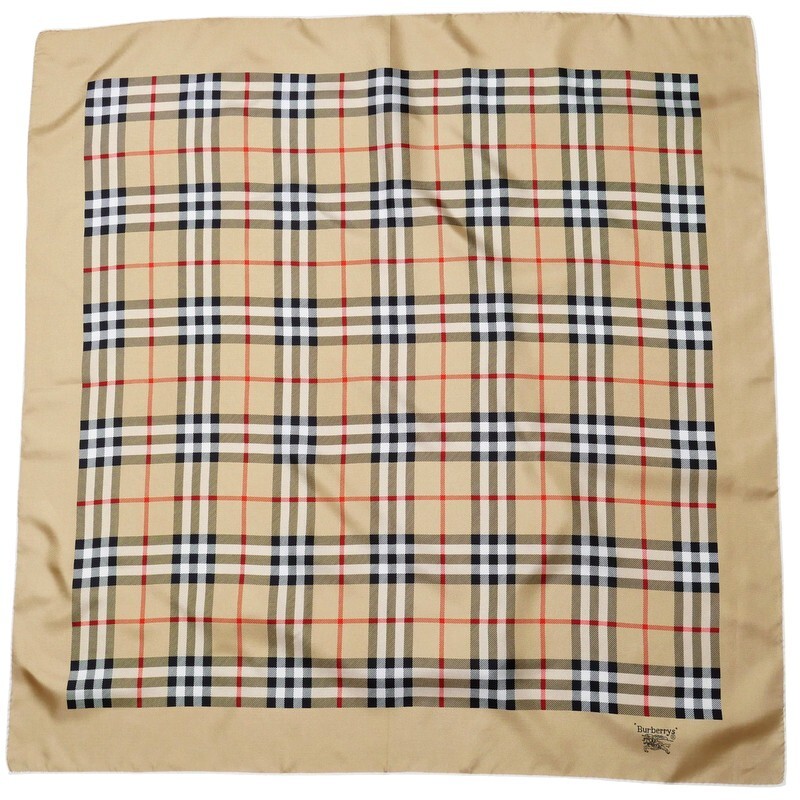 GS3639*Burberrys バーバリー vintage チェック柄 大判シルクスカーフ ストール ベージュ | |||
