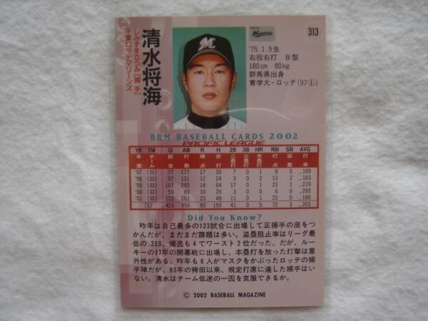 【BBM プロ野球カード 2002】No.313 清水将海 千葉ロッテマリーンズ【トレーディングカード トレカ ベースボールマガジン社】