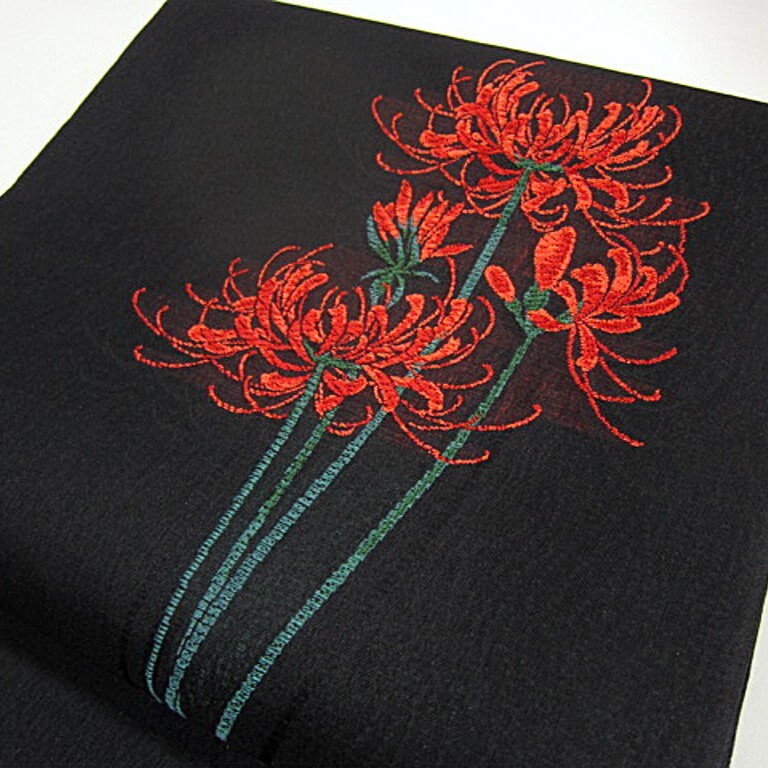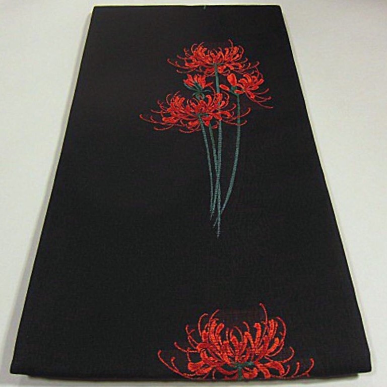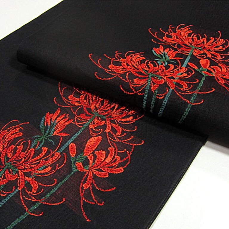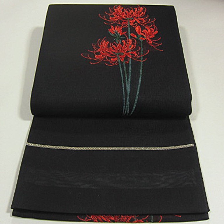単衣に!スリーシーズン 新品未仕立 西陣織六通柄高級袋帯 黒地 彼岸花
