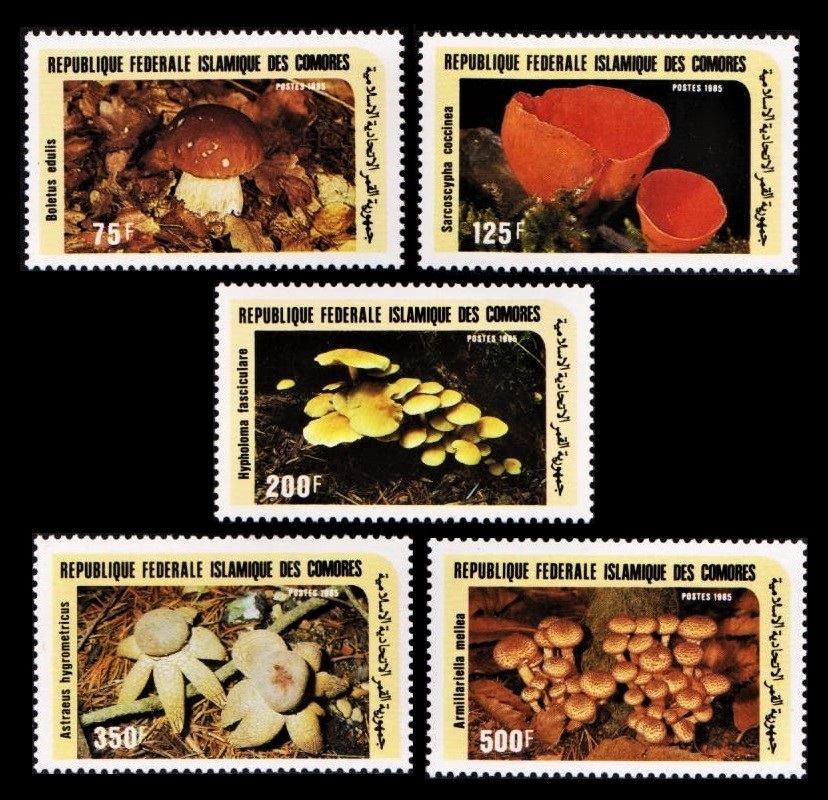 dω287y1-7C コモロ諸島1985年 ヤマドリタケなど茸・5枚完