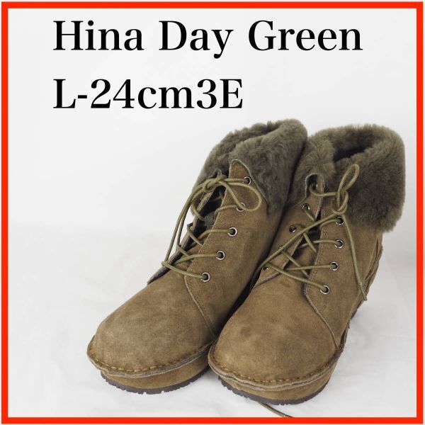 ★100スタ★EB9465*Hina Day Green*ヒナ デイ グリーン*レディースショートブーツ*L-24cm3E*カーキ
