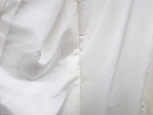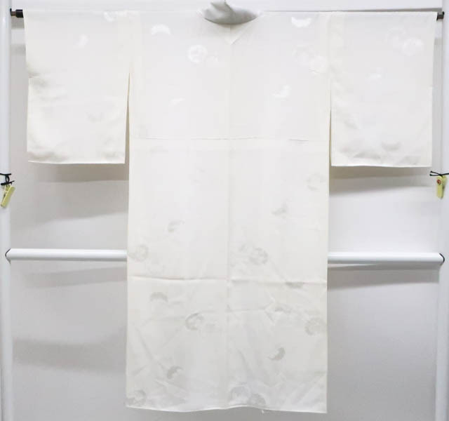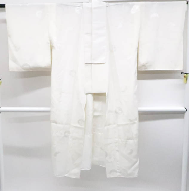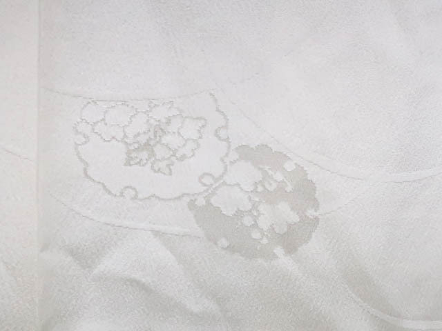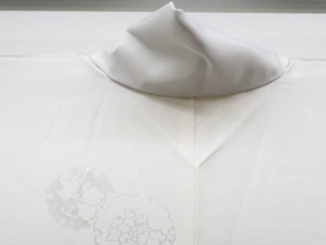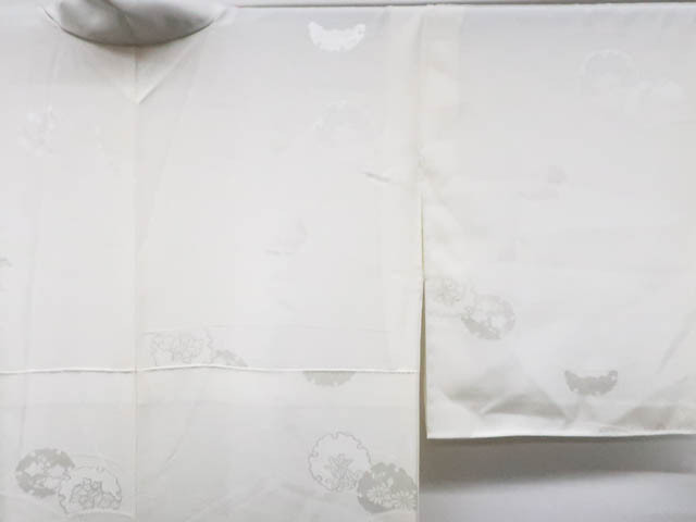 右後ろ袖、左後ろ身頃、裏地に点シミがございますが、大変良い状態のお品です。 地色は白です。 1枚目の画像が近いお色かと思われます。 素材は正絹です。 |