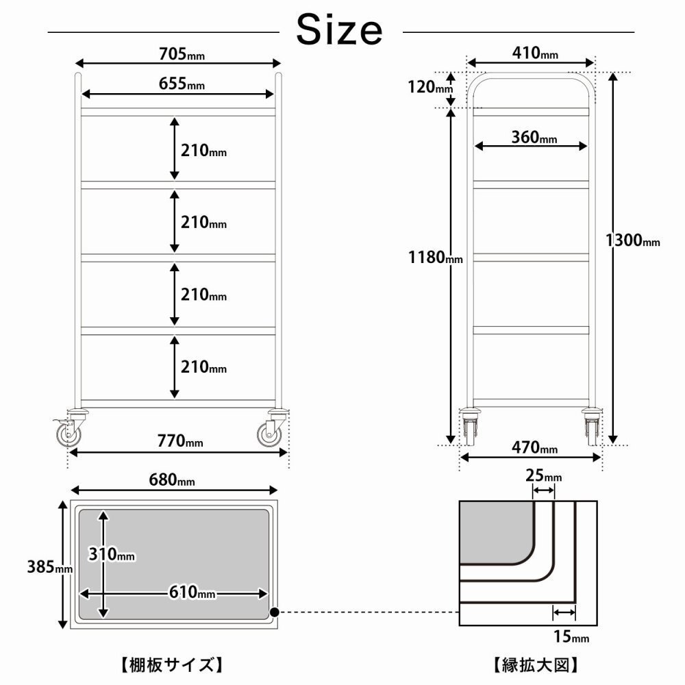 仕様 | 5段タイプ キャスター4輪自在、2輪ストッパー付 |