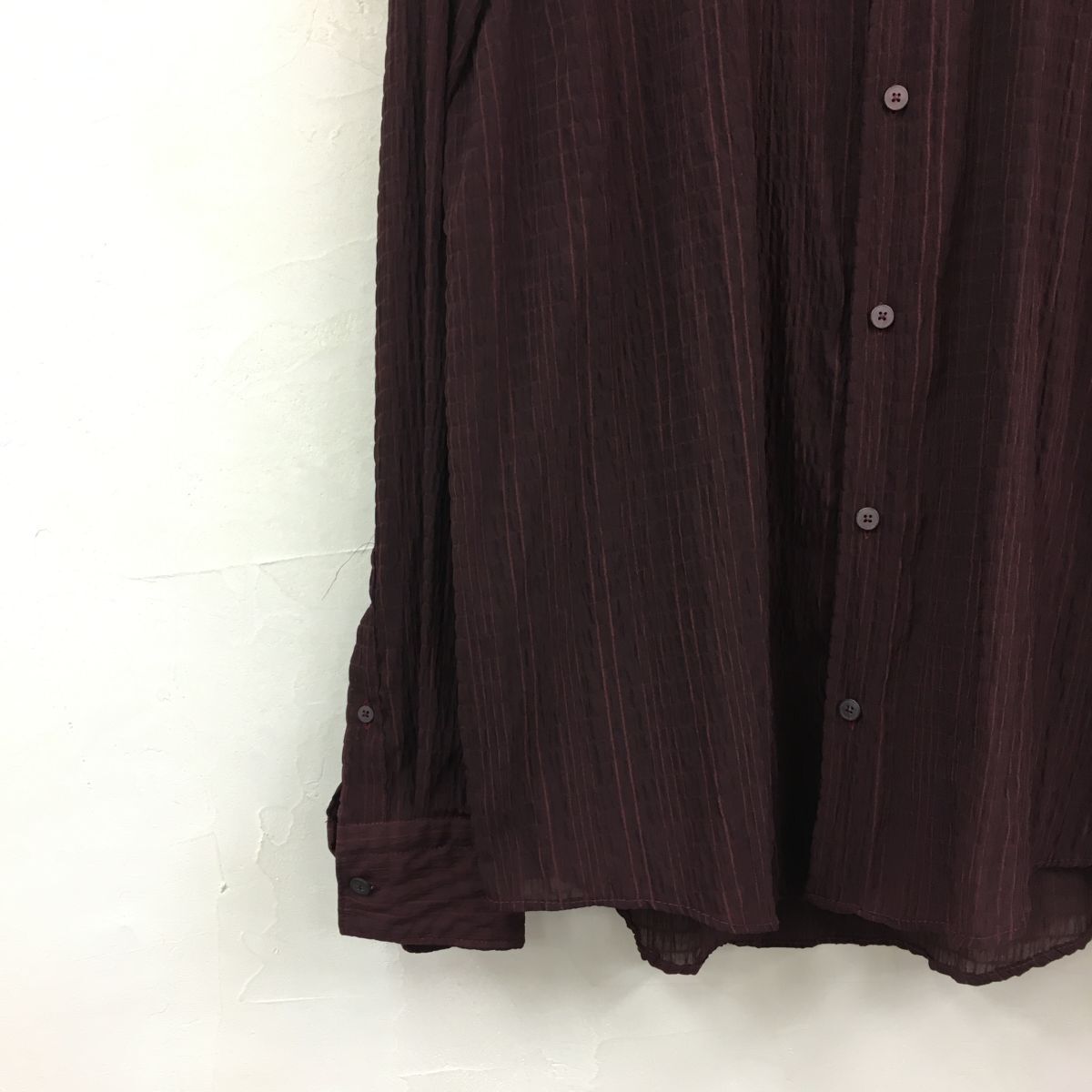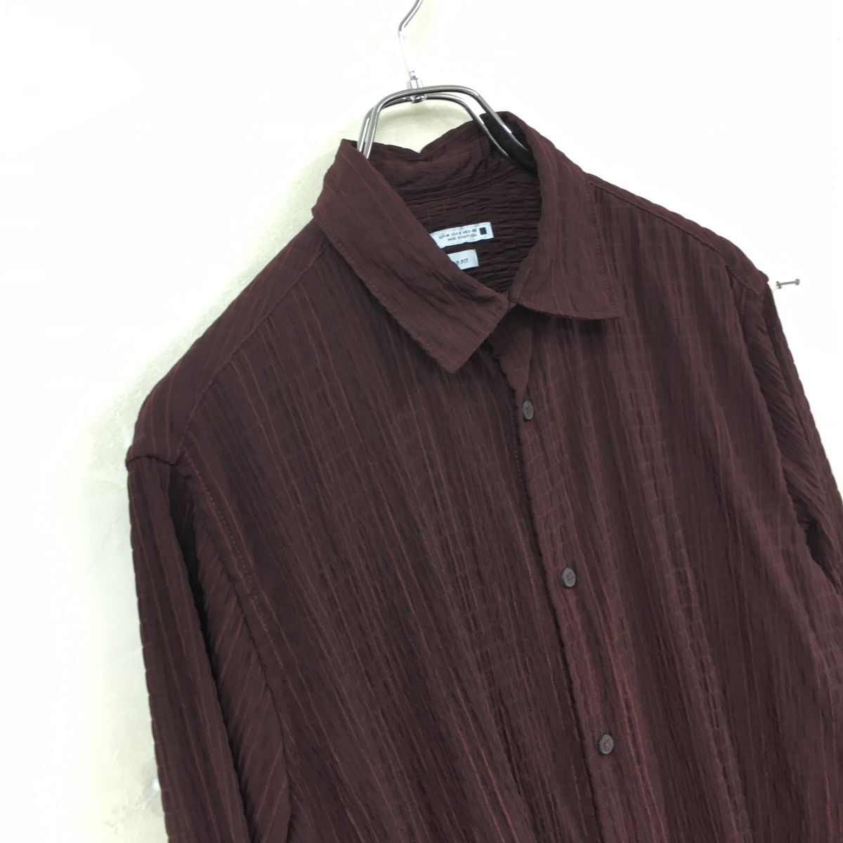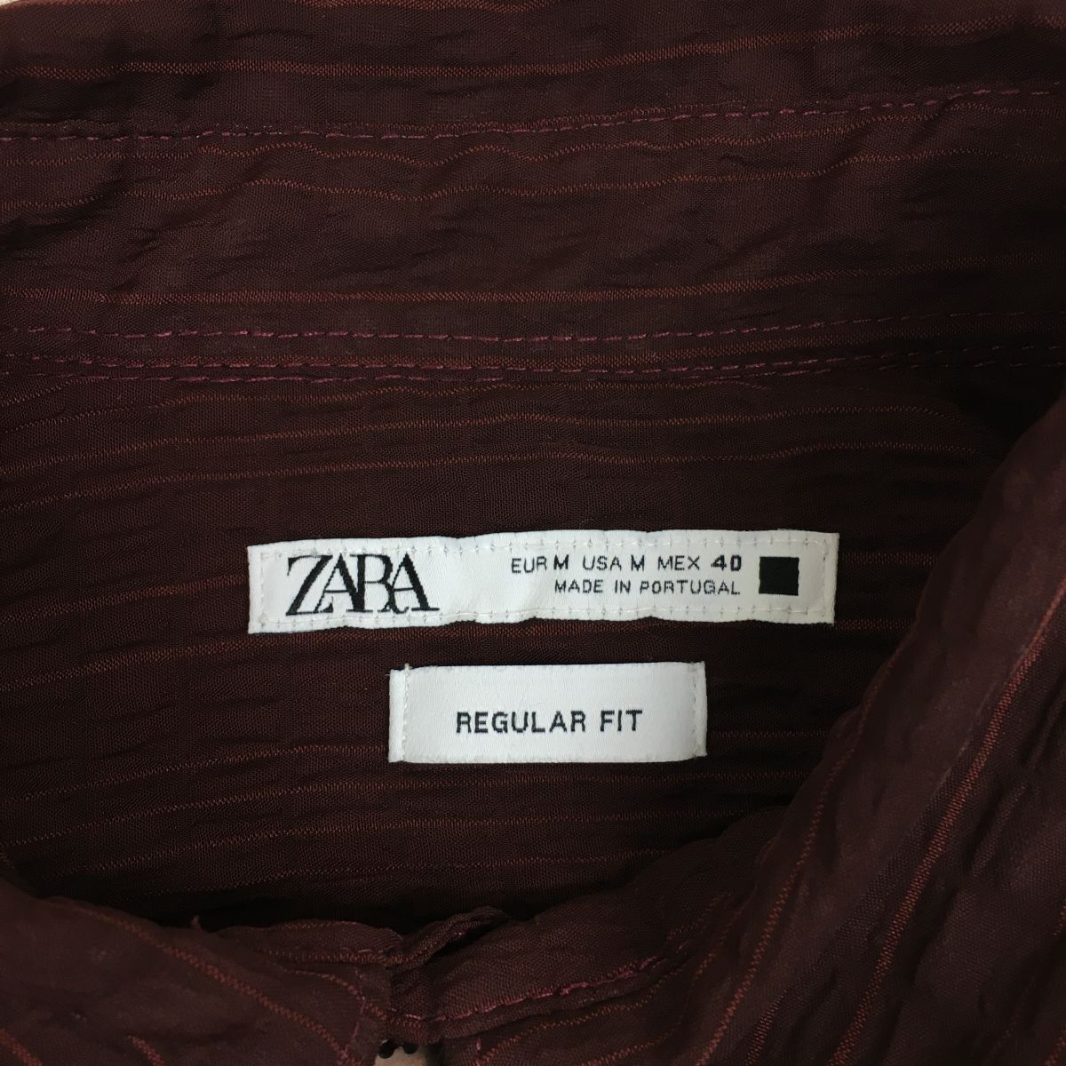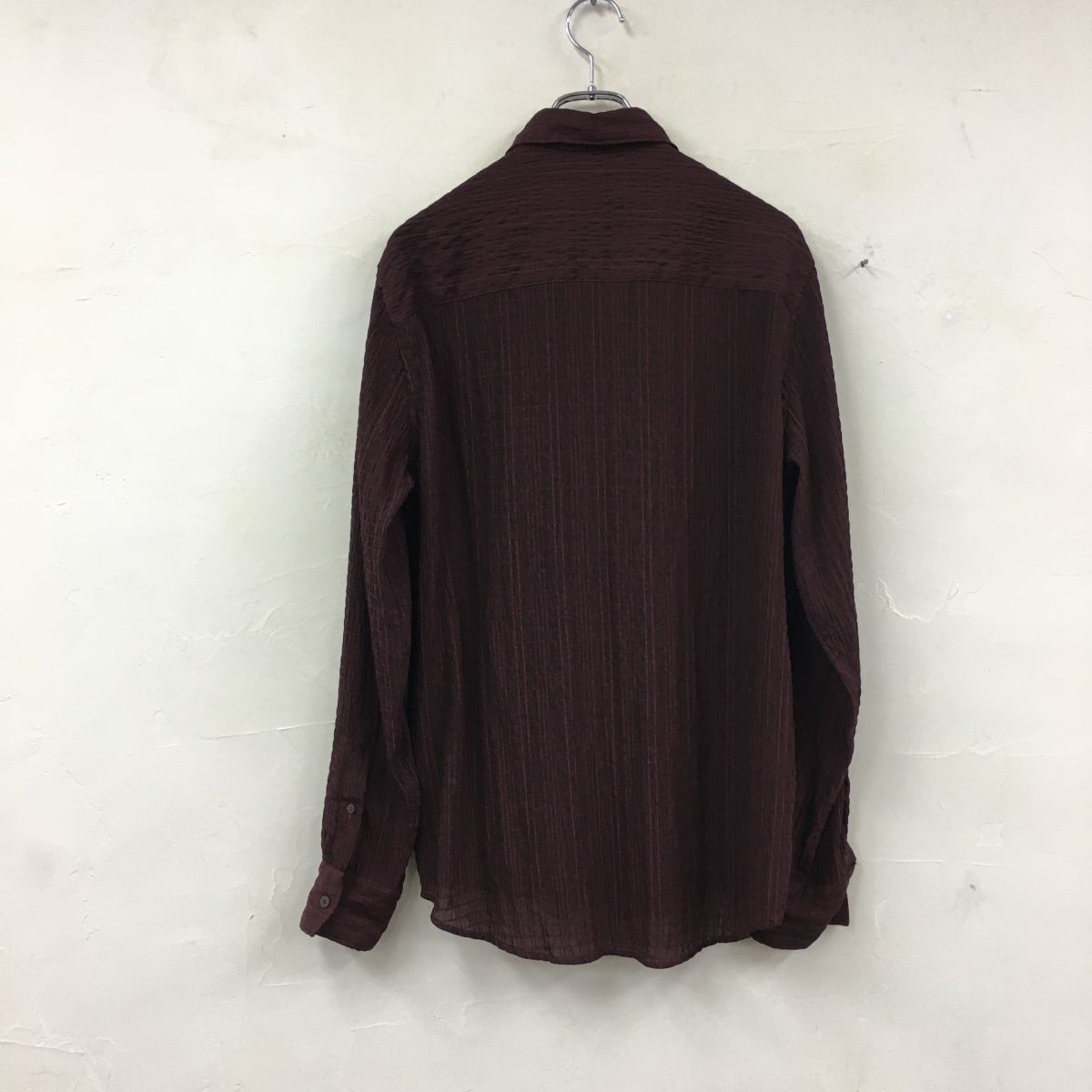 2O1893-G-N◆ ZARA ザラ シアーチェックリンクルシャツ 長袖 ラウンドヘム レギュラーフィット ◆ sizeM ブラウン ポリエステル