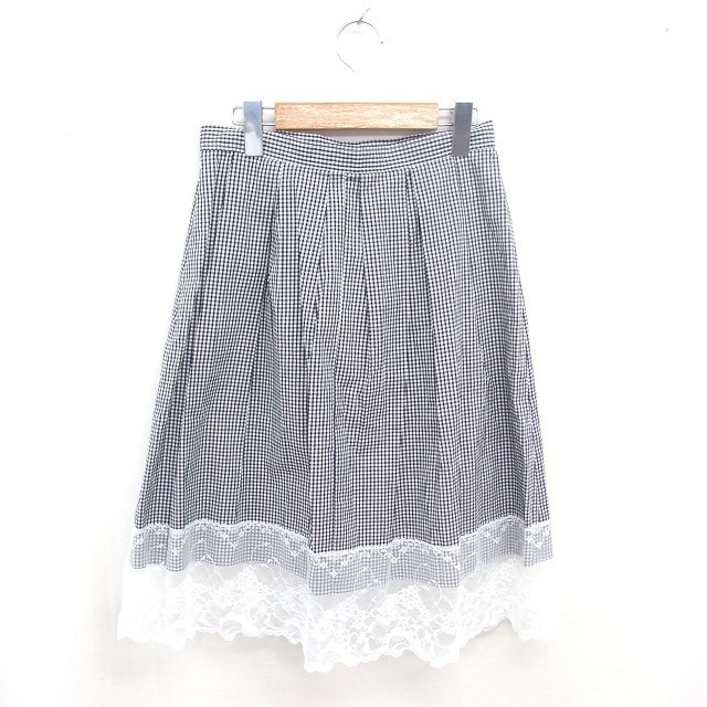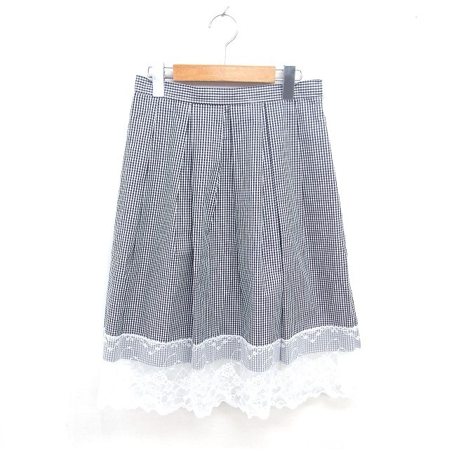 カールパークレーン KarL Park Lane フレア スカート ひざ丈 レース チェック スカラップ L ブラック ホワイト 黒 白 /TT レディース