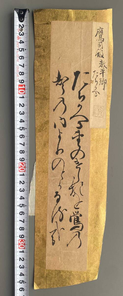 ◆真作『鷹司教平 短冊』仮名書 短冊 詩歌 書道 明治 大正 和歌 書蹟 墨書 Y-101309