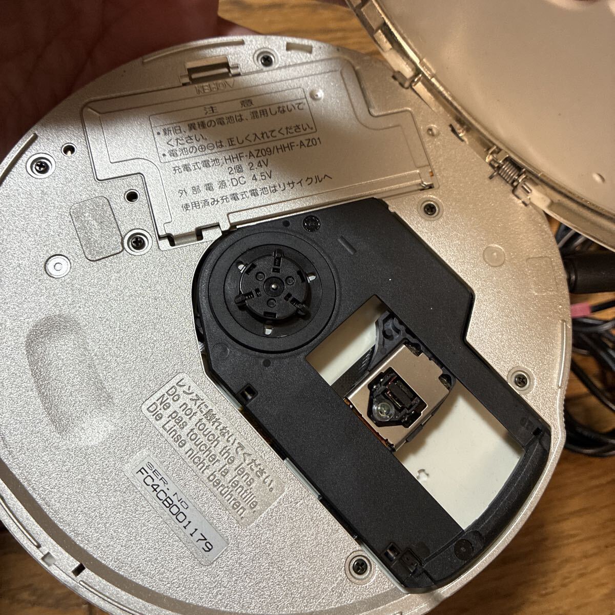御覧いただきまして誠にありがとうございますパナソニックの古いCDプレイヤーです現状電源は入りますが動作未確認ですヘッドホンがあれば確か聞けたはずですが定かではありませんし付属品もACアダプターしかありませんのでジャンク扱いでお願いします尚落札後のキャンセル、クレームは一切受け付けませんので慎重にお願いします。