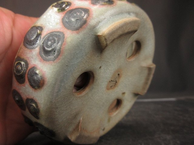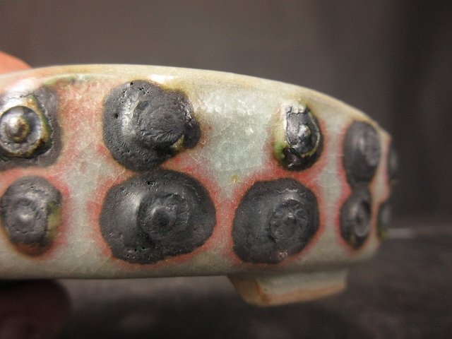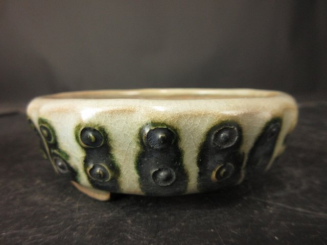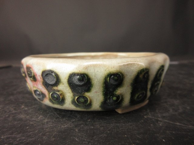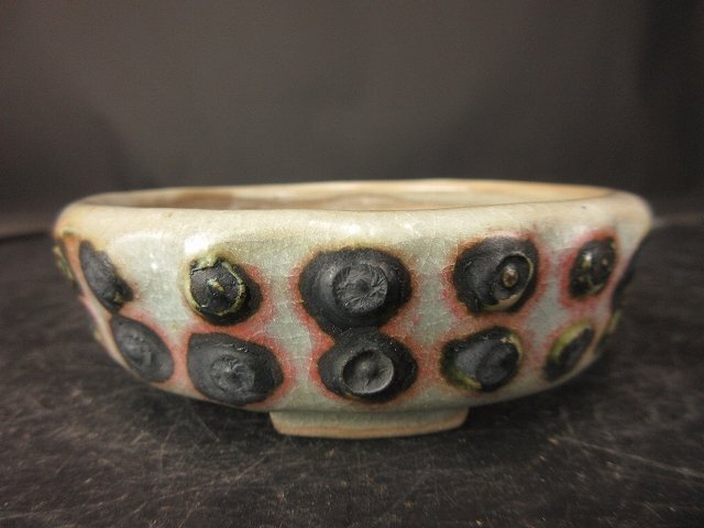 ご覧のような『今岡町直 鋲打丸鉢 (小品)(人気作家)』でございます。鑑賞用・使い鉢としていかがでしょうか。