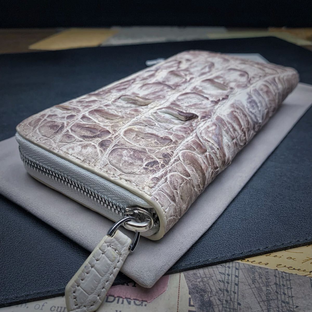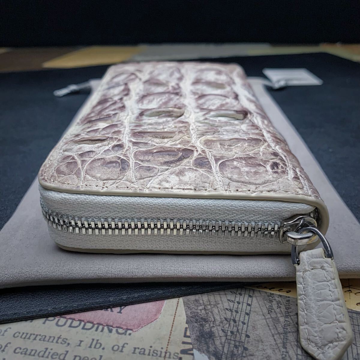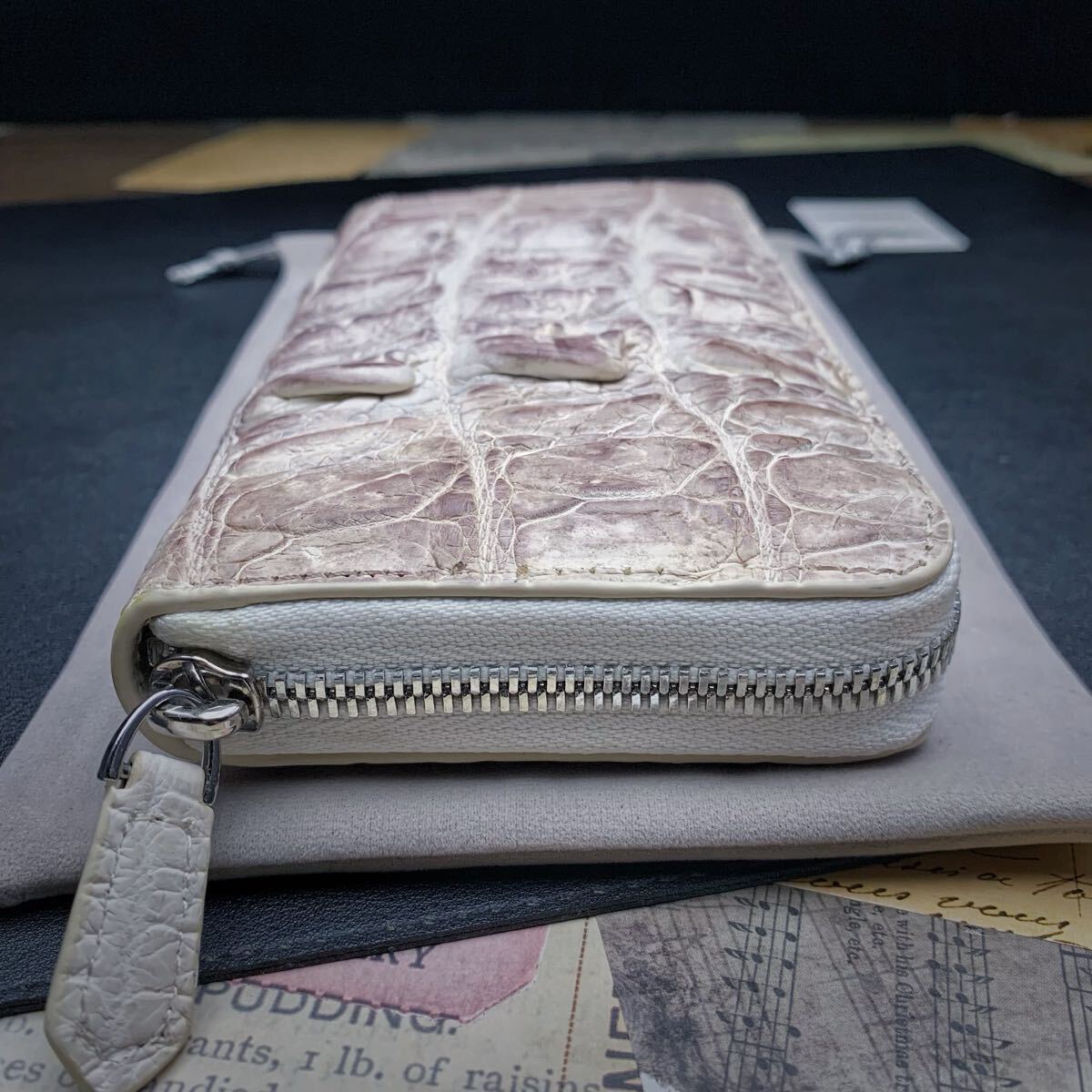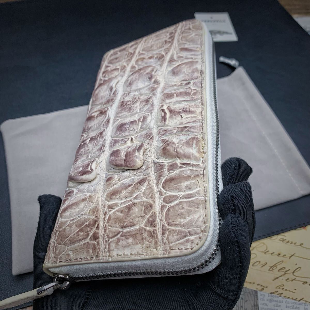 ・クロコダイルと呼ばれている品種のワニ革は人気が高く、独特の模様と凹凸が魅力で、高級ブランド品を中心にクロコダイルが多く使われています。今回はワニ革の代表格である『シャムクロコダイル』のセンターカット背中革のラウンドファスナー財布を出品します。