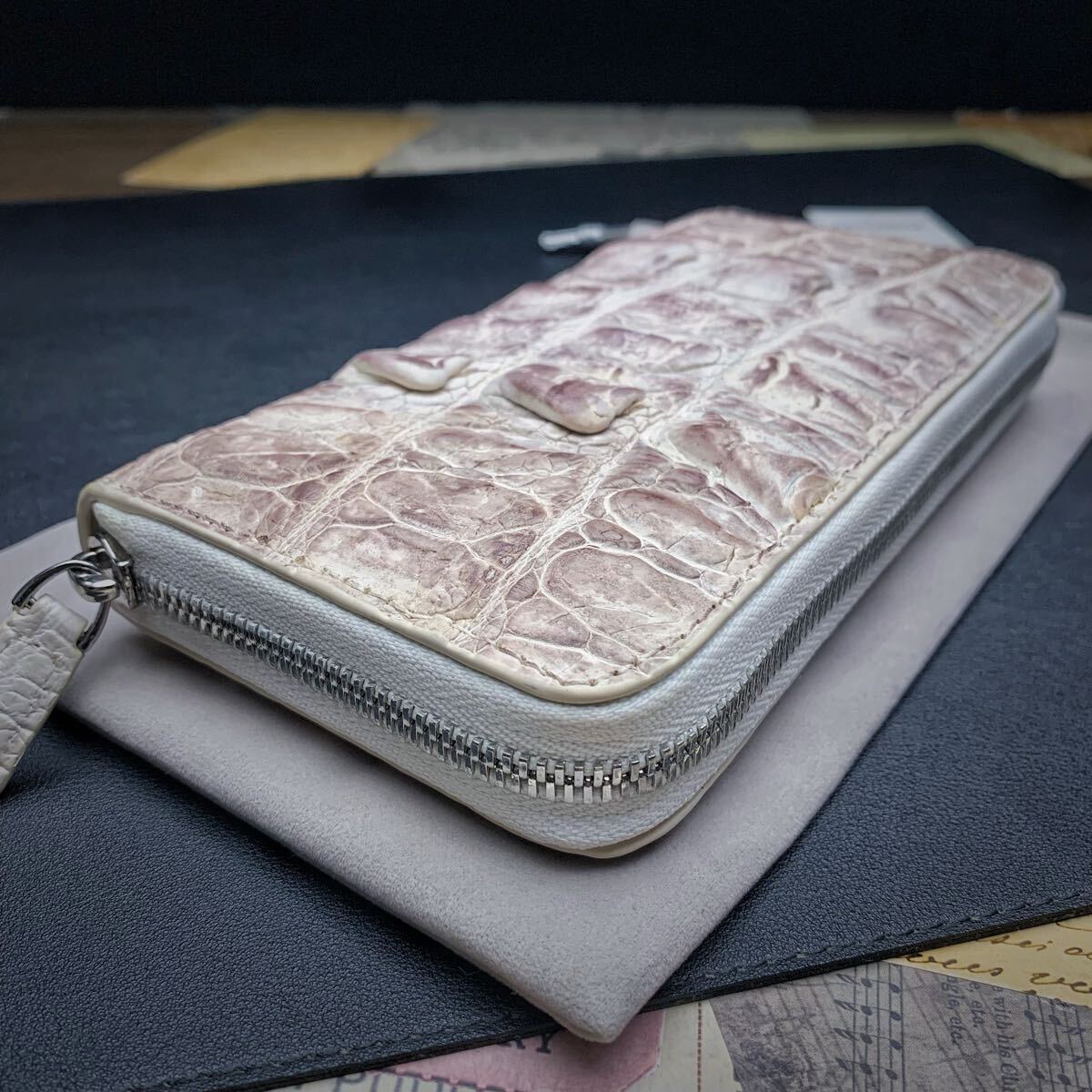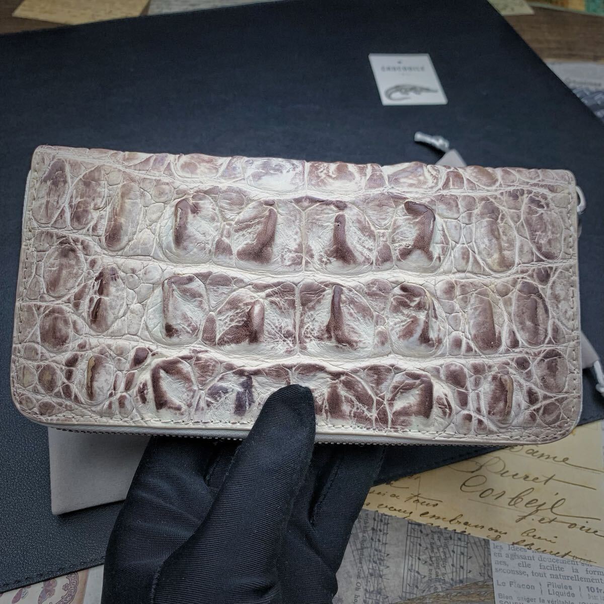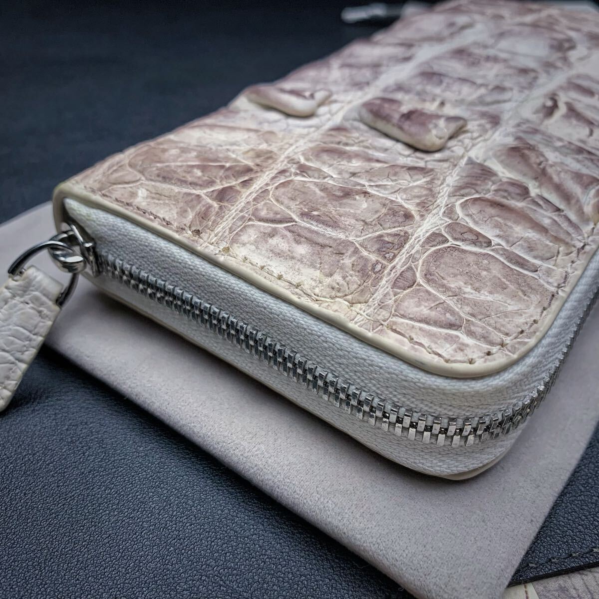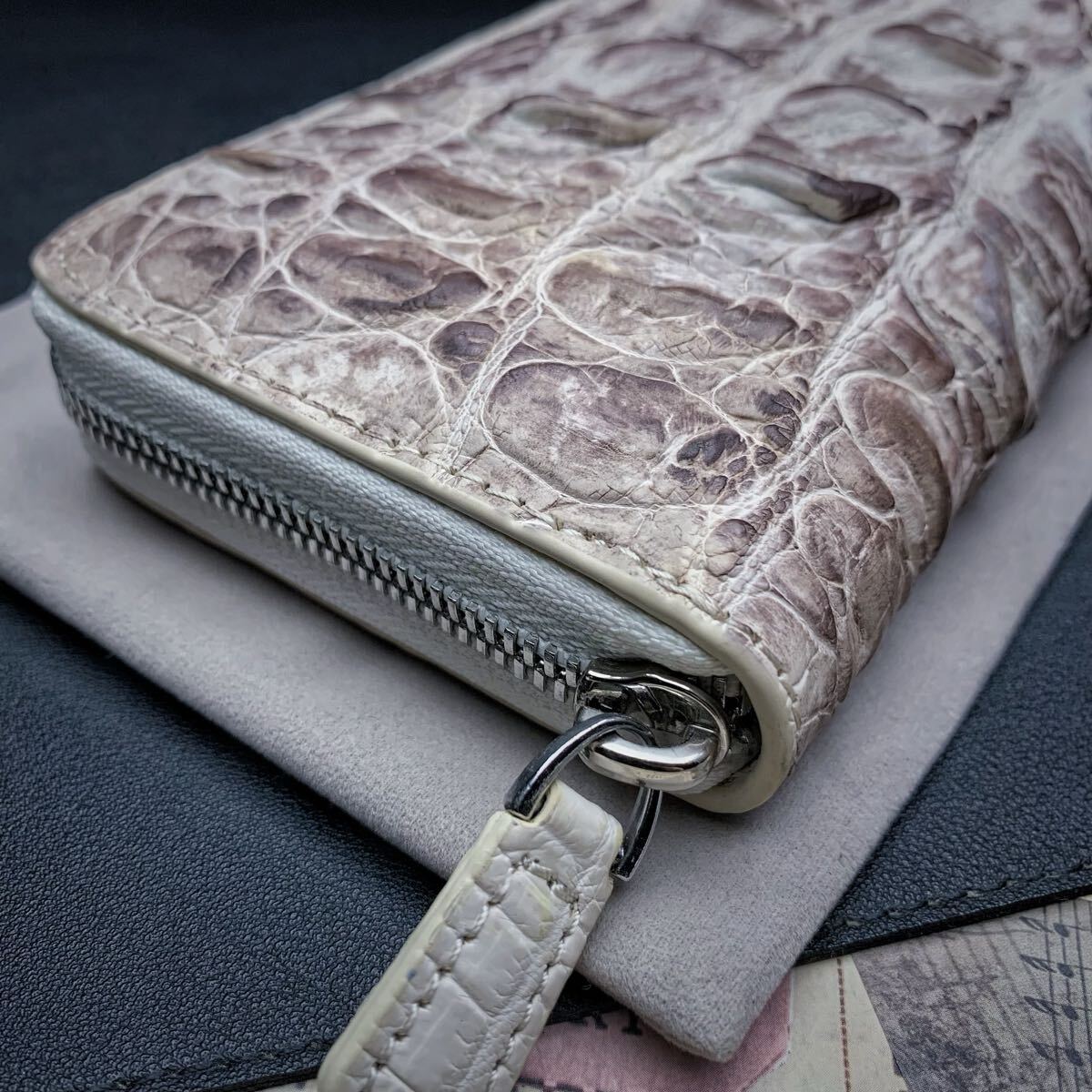 ・クロコダイルと呼ばれている品種のワニ革は人気が高く、独特の模様と凹凸が魅力で、高級ブランド品を中心にクロコダイルが多く使われています。今回はワニ革の代表格である『シャムクロコダイル』のセンターカット背中革のラウンドファスナー財布を出品します。