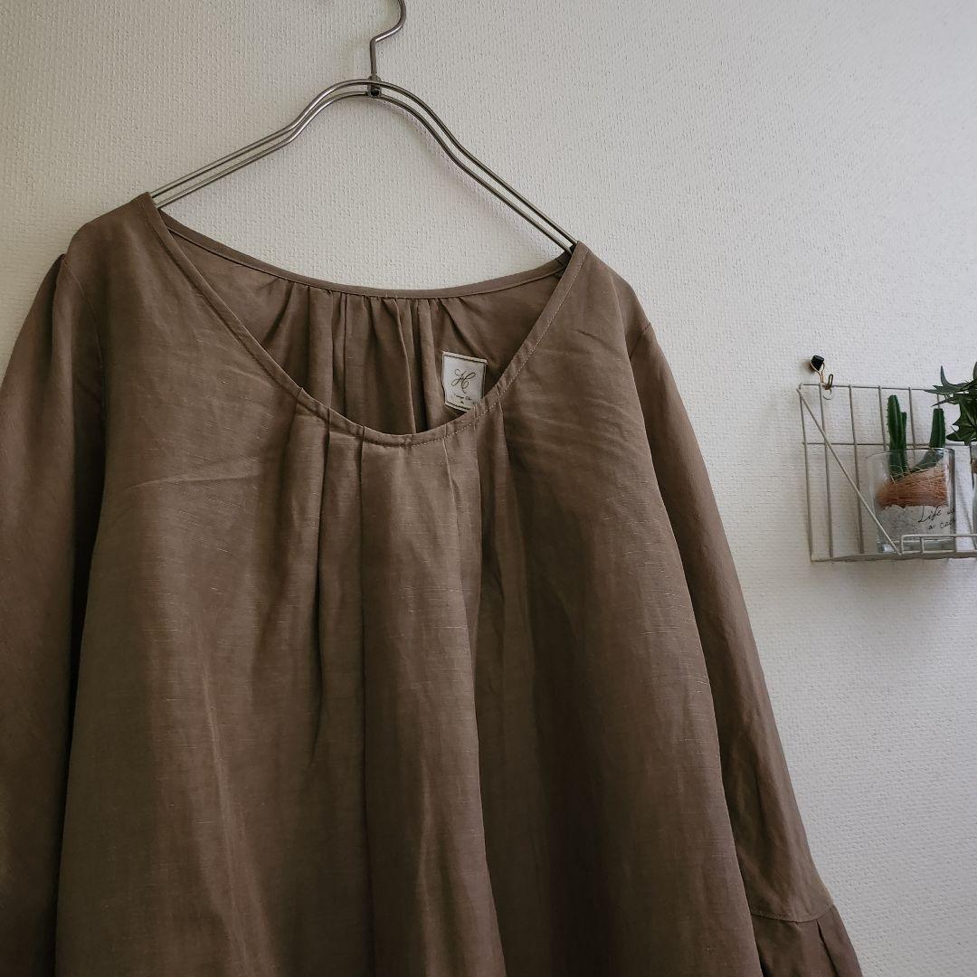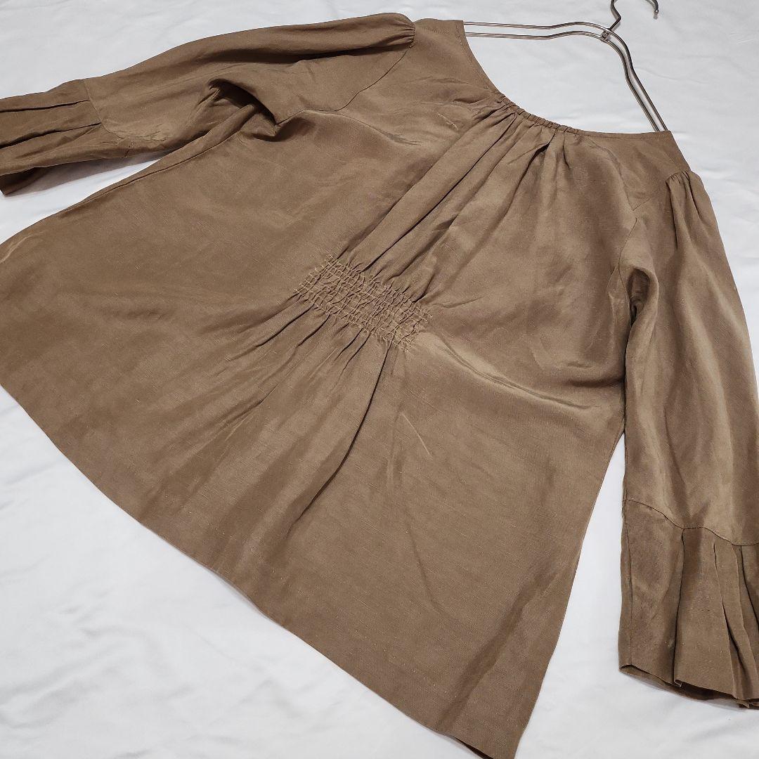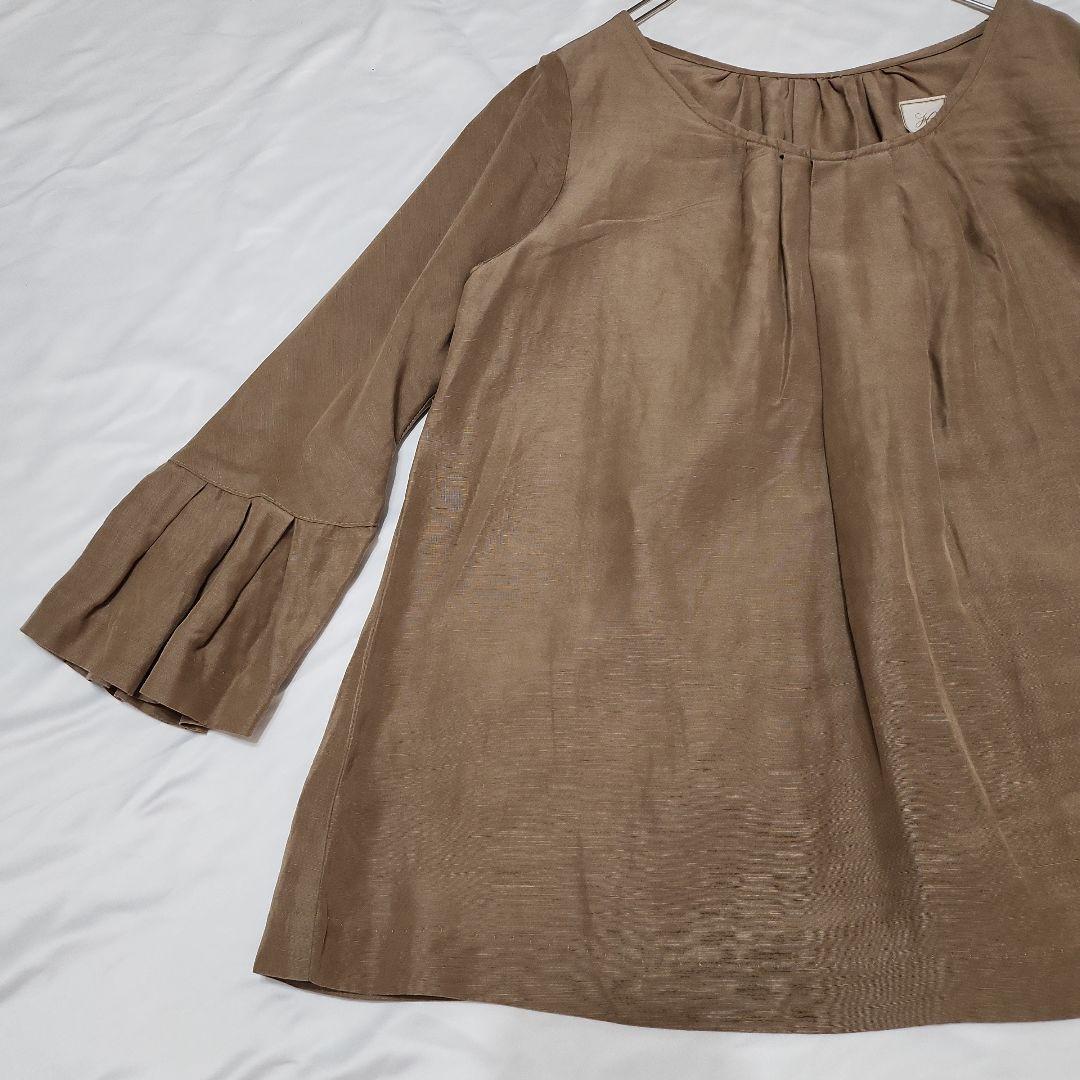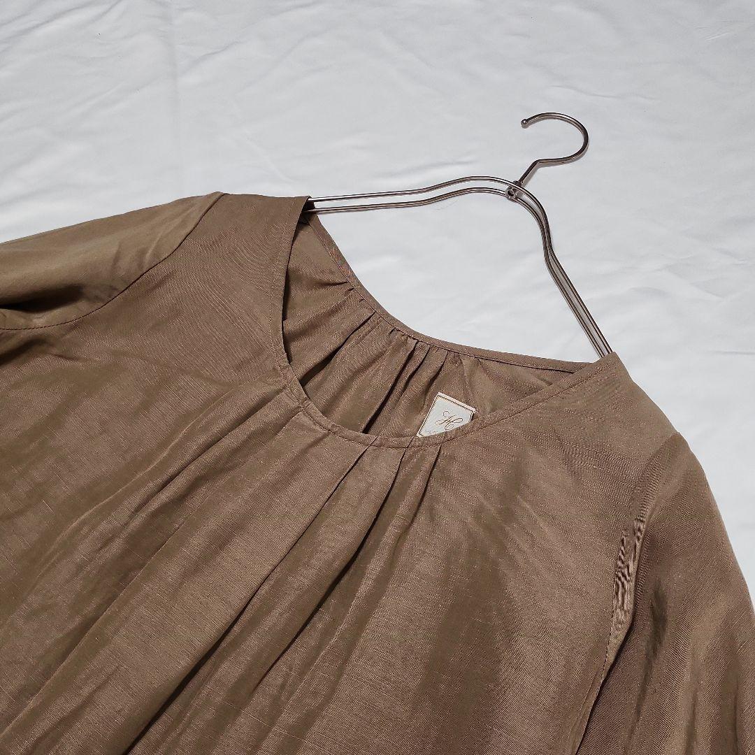 a10 美品 ハグオーワー リネン混 長袖トップス/ブラウス 茶