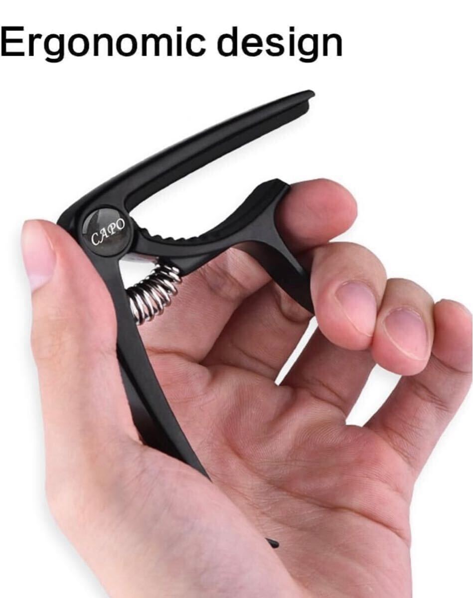 人間工学に基づいたデザインと手のひらのサイズにより、強力なグリップ力を発揮する初心者から上級者まで適用される高品質のカポタストです!テコの原理を活用し、握りやすく力を省くことができて、弦 を確実に押さえつけて、正しい音を確保。