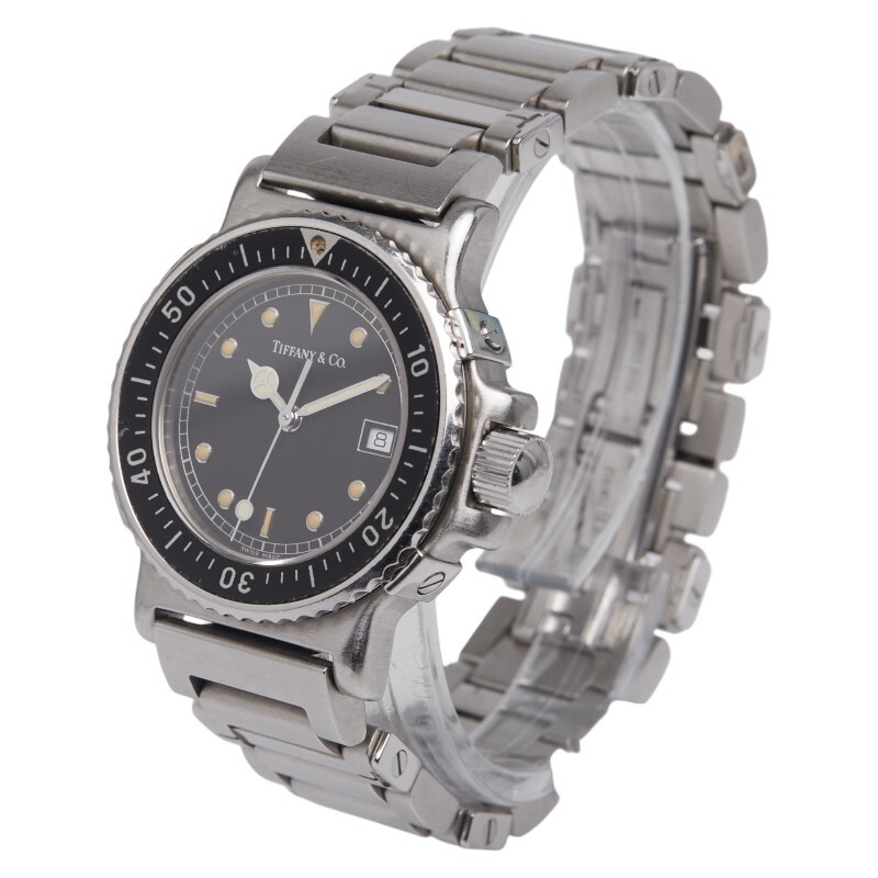 ティファニー ダイバー クラシック 腕時計 L 0711 クオーツ ブラック文字盤 ステンレススチール レディース TIFFANY&Co. 【中古】