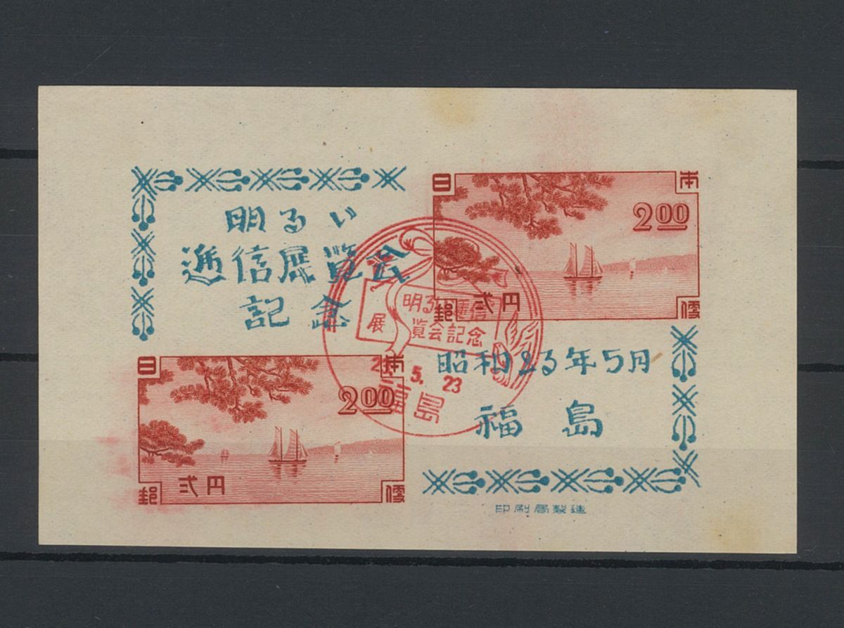 日本切手 記念 1948年「福島逓信展」2円+2円 特印付小型シート ② シミ有