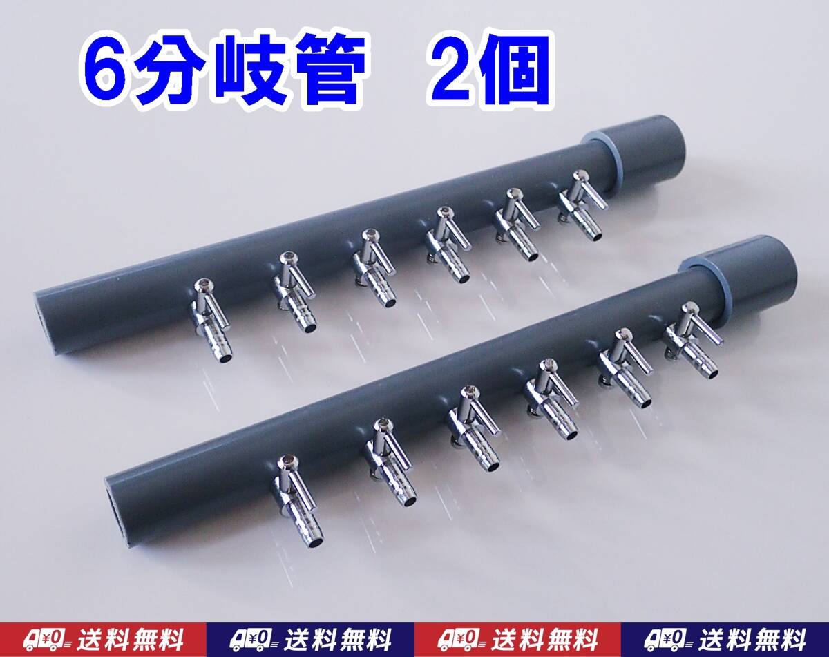 【送料込】ブロワ接続用 エアーコック 6分岐管 2本  一方コック6連1列  シュリンプ・金魚・メダカ水槽のエアー分岐に ポンプ圧調整に