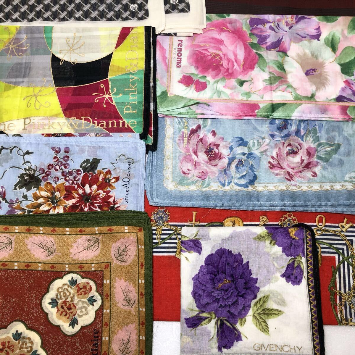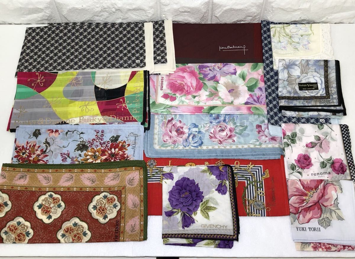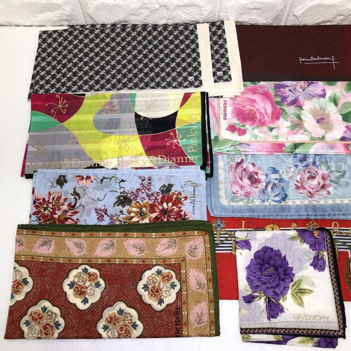 ハンカチ まとめ 15点 ブランド ジバンシー レノマ ピンキーダイアン マリクレール ロベルタ YUKI TORII ユキトリイ 綿100%