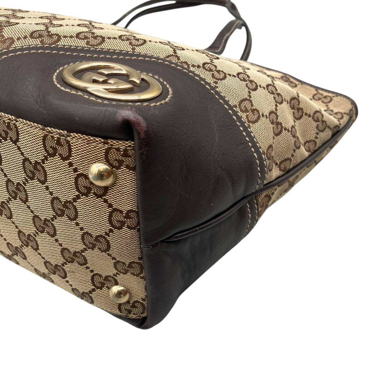 GUCCI グッチ GG キャンバス レザー トートバッグ ブラウン ハンドバッグ ベージュ×ブラウン 169946 502752 |