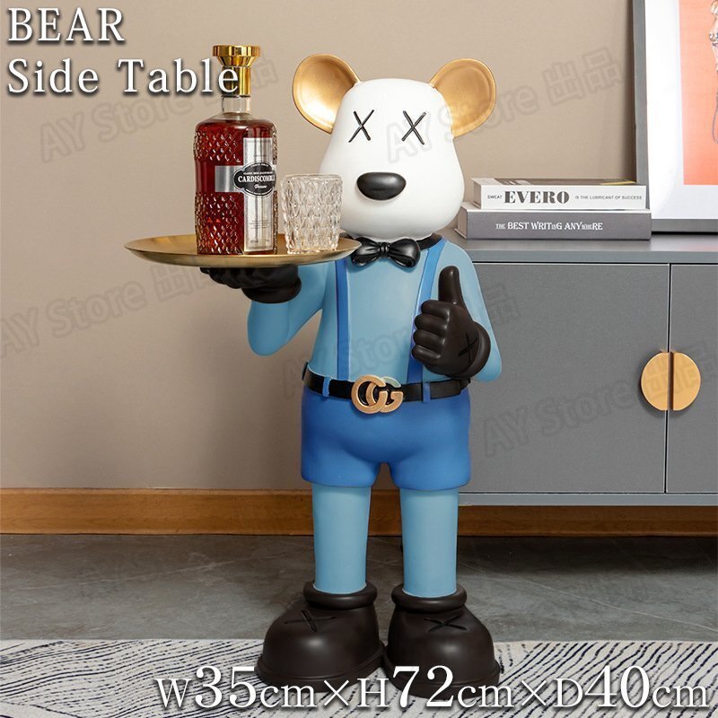 1円スタート 売り切り サイドテーブル おしゃれ テーブル ナイトテーブル アクセサリートレイ 収納 鍵置き ソファ くま オブジェ bhw0168