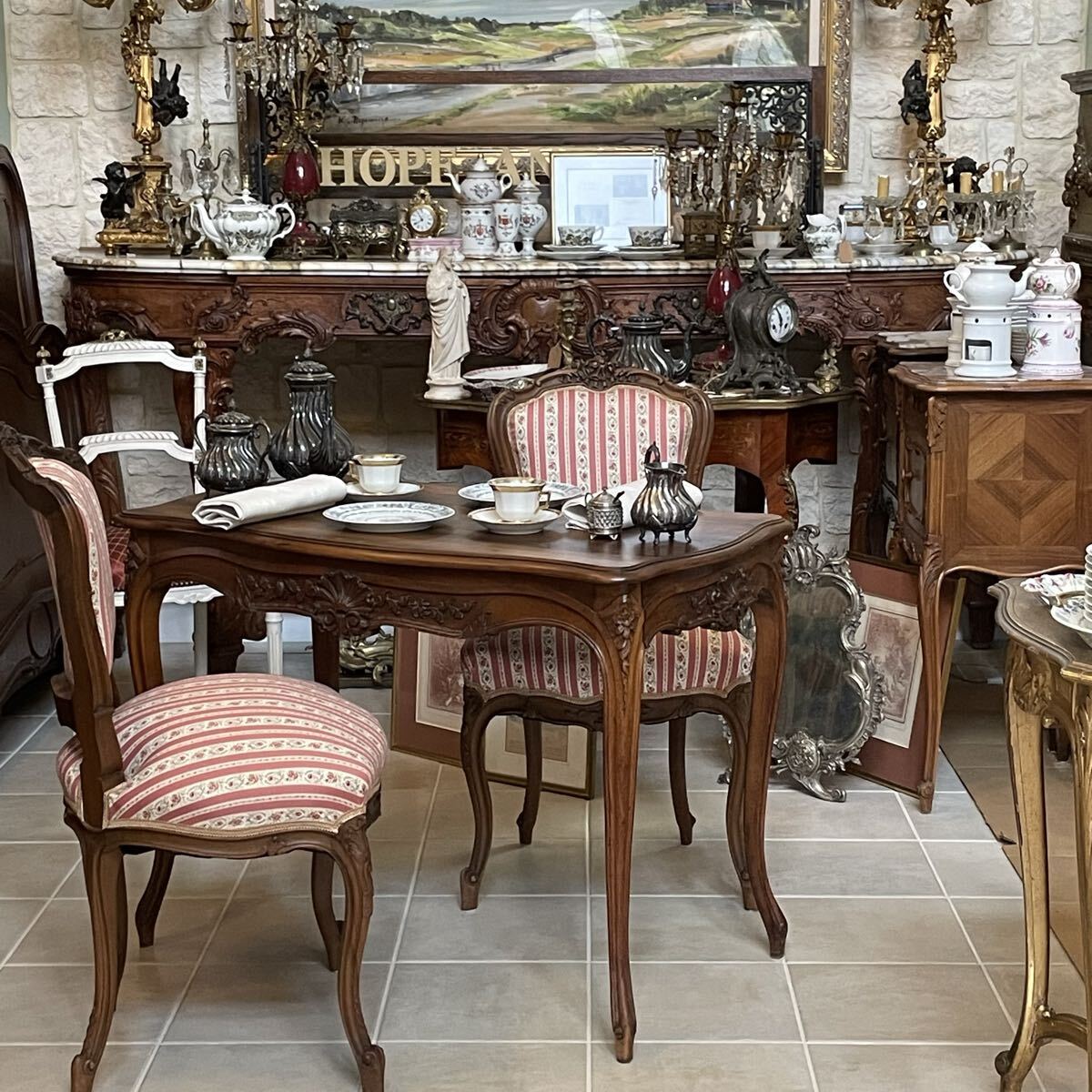 シャトーのサロンルームの一角にサロンセットのテーブルとして、優雅なティータイムに活躍していたテーブル。