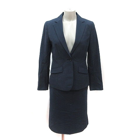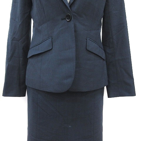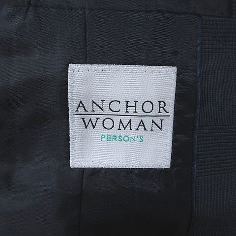 パーソンズ アンカーウーマン スーツ テーラードジャケット グレンチェック 背抜き 台形スカート ひざ丈 9 紺 黒 レディース