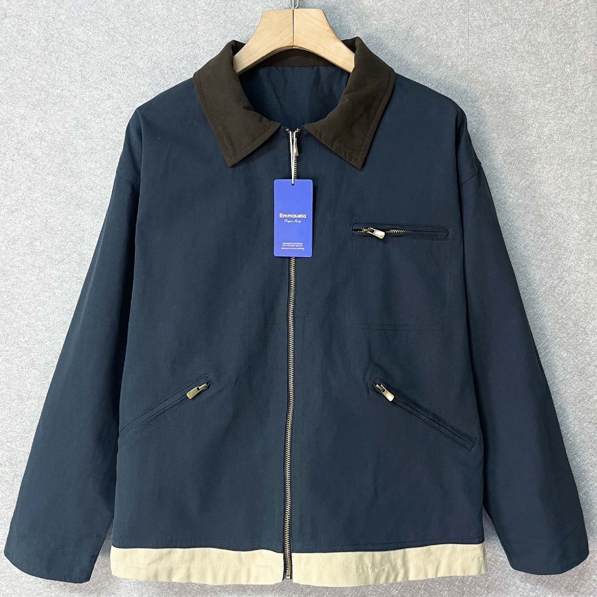 新作・ジャケット 定価6万◆Emmauela・イタリア・ミラノ発◆コットン混 ソフト 保温 切替 コート ブルゾン アウター ビジネス 通勤 秋冬M