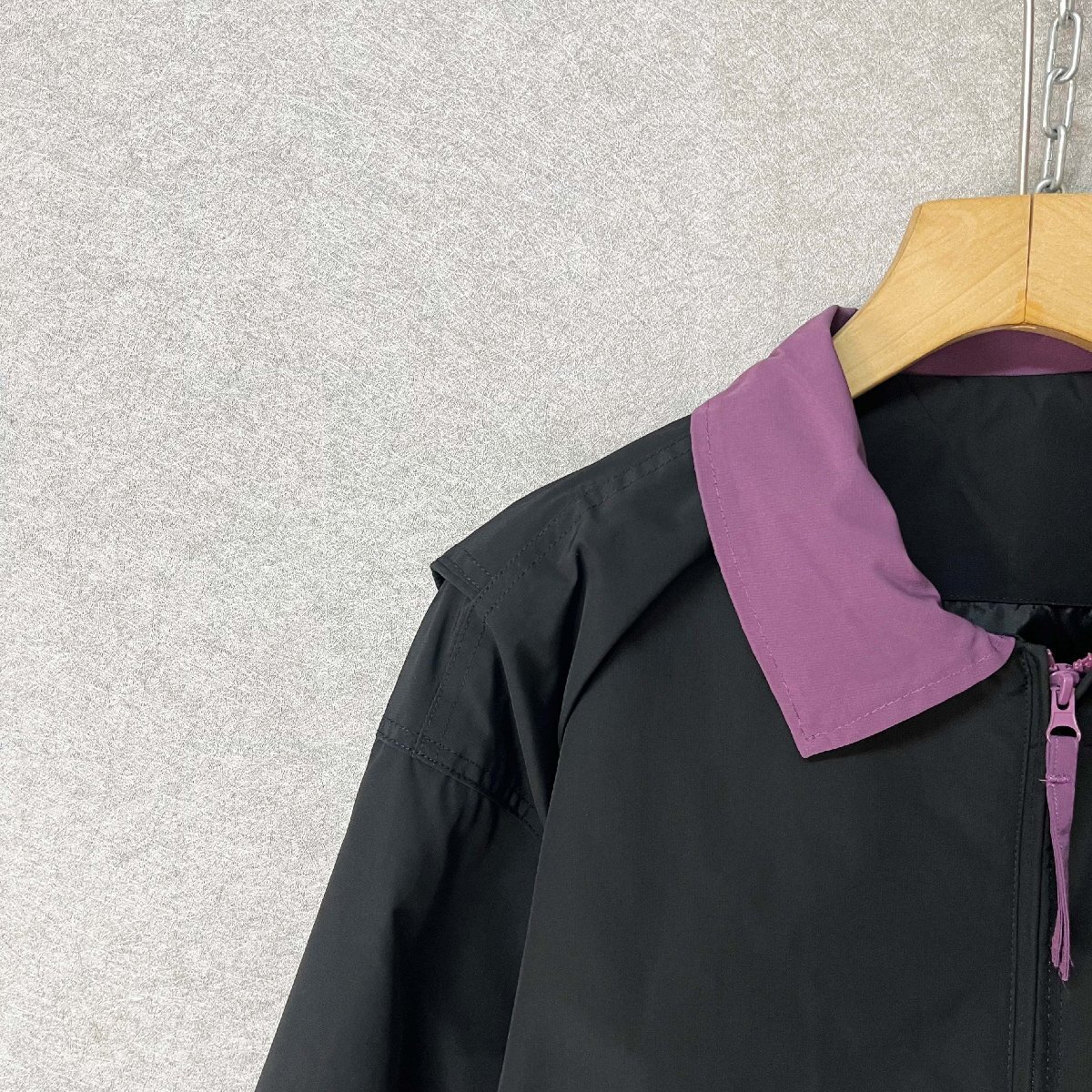 バイカラーの切り替えデザインを施した襟が、シンプルながらも洗練された存在感を演出。袖口はゴム仕様で、冷たい風の侵入を防ぎつつ、快適なフィット感をキープします。胸ポケットをあしらい、機能性とファッション性を両立した仕上がりに。
