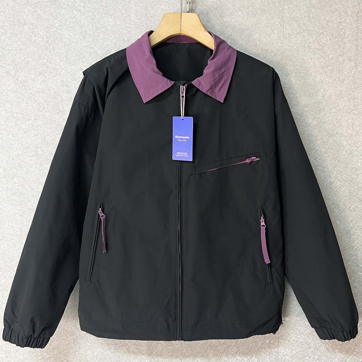 人気・ジャケット 定価6万◆Emmauela・イタリア・ミラノ発◆柔らかい 通気 保温 シンプル 切替 ブルゾン アウター カジュアル 通勤 街着 L/48サイズ