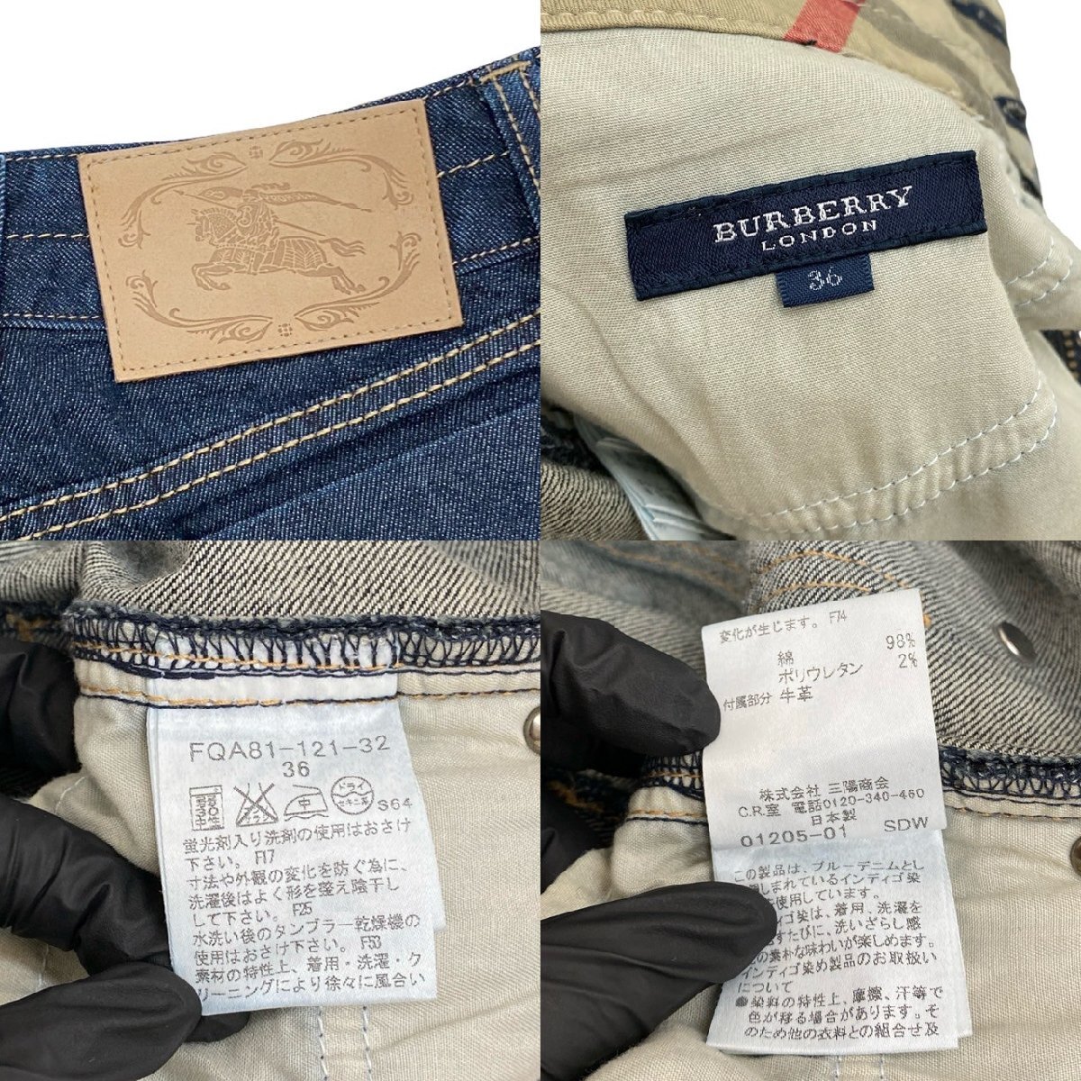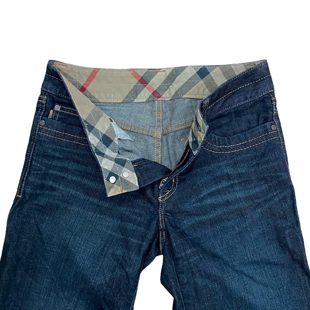 極 美品 BURBERRY LONDON バーバリー ロンドン ノバチェック デニム パンツ 36サイズ ボトムス レディース ブルー 134-9