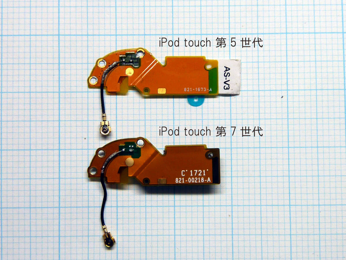 ※ちなみに、ipodtouch 第5世代と 第7世代のWi-Fiケーブルの違いは一見した所ケーブルの長さで、 第7世代につけようとしても長さが足りないのでうまくネジで固定出来ませんでした(最後の画像参照)