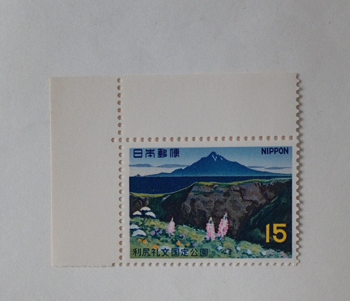 ★ 昭和43年 国定公園 利尻礼文 礼文から利尻島 15円 1枚/耳紙付き/耳付き/額面15円/未使用/1968年/切手