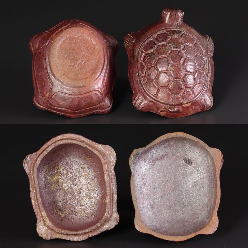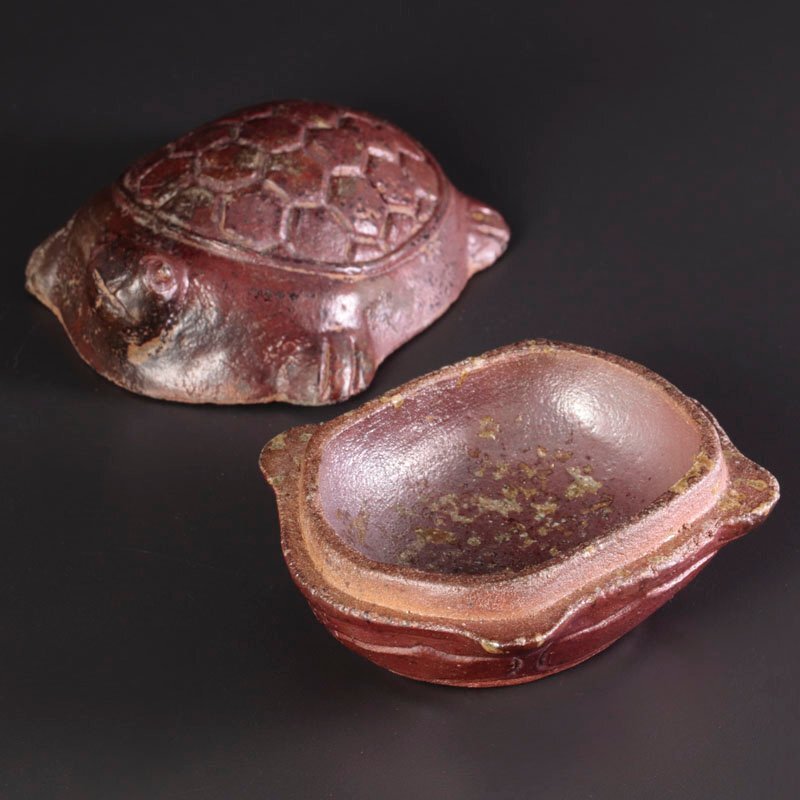 | 細部まで丁寧に形作られた亀の香合です。黒唐津ならではの味わいある景色が調和しています。 ★商品は西岡小十の作品である事を保証致します。 |