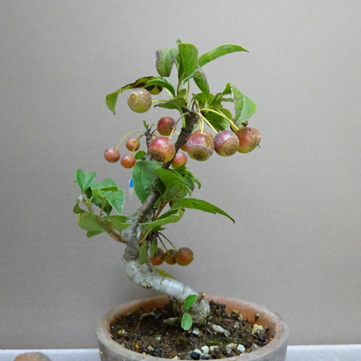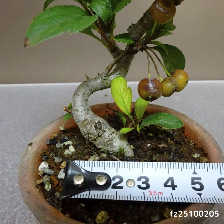 | ■植物ですので撮影時期や季節によって剪定などの手入れにより写真から変化がございます。撮影日をご確認のうえ、ご注文ください。 ■翌年の実付きをよくするために観賞後の11月末~12月にかけて摘果しています。お届けの商品にはカイドウの実がない場合がございます。 【海棠盆栽】 深山海棠は植物学的にはズミの総称です。山野の日当たりの良い場所に生えています。別名をコリンゴともいいます。名前の由来は「染み」で樹皮を黄色の染料にしたことによります。花は白色か淡紅色。秋に熟する実は食用。ここでは、赤実のズミをミヤマカイドウ。黄実に熟するものをキミズミとして分けています。 |