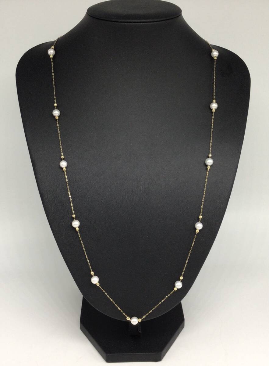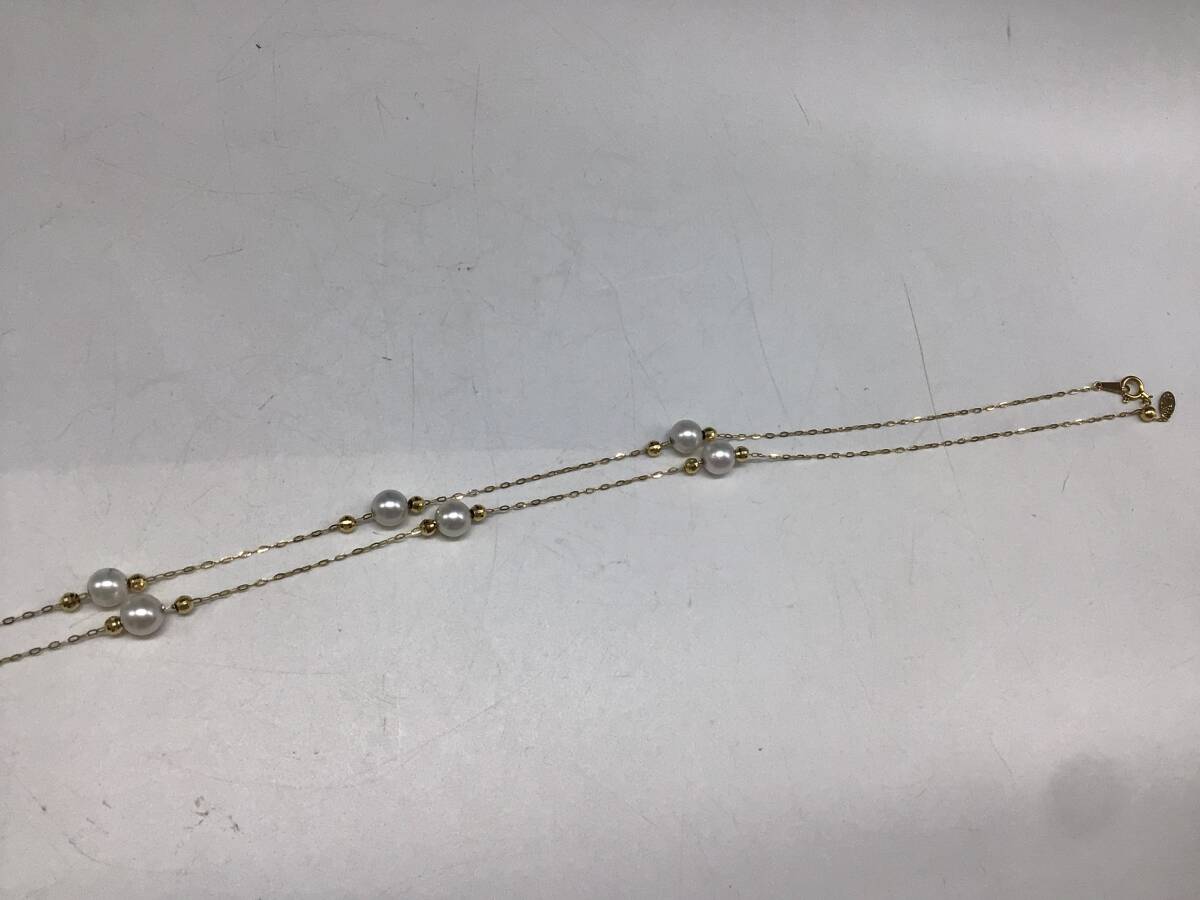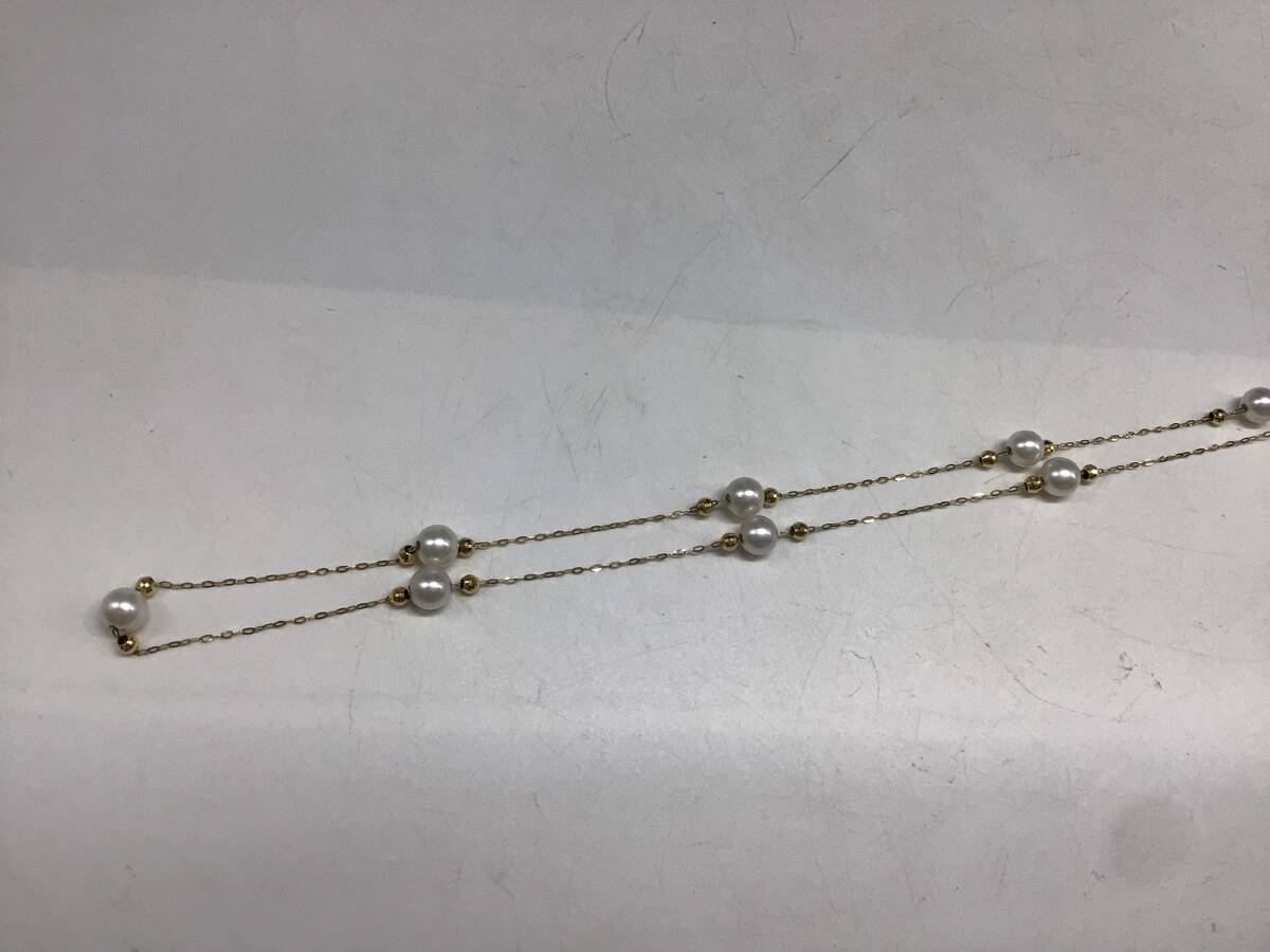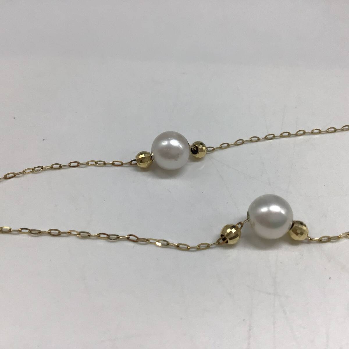 7060■ K18 パールネックレス 真珠約6mm玉 総5.4g ロング アクセサリー
