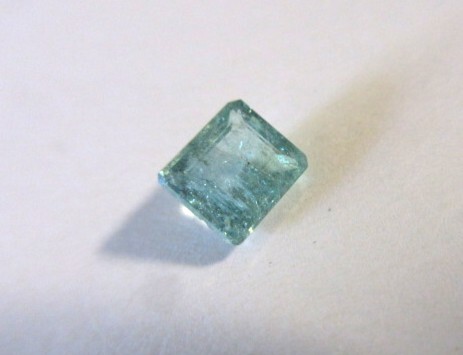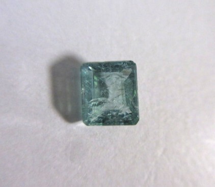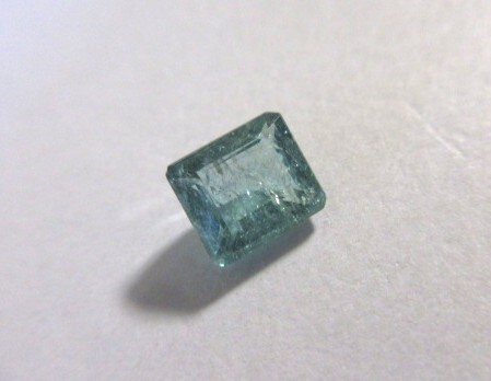 淡いグリーン水色のトルマリンです。銅に起因する色味です。インクルージョンがありますが、透明感とテリがあります。低温加熱。