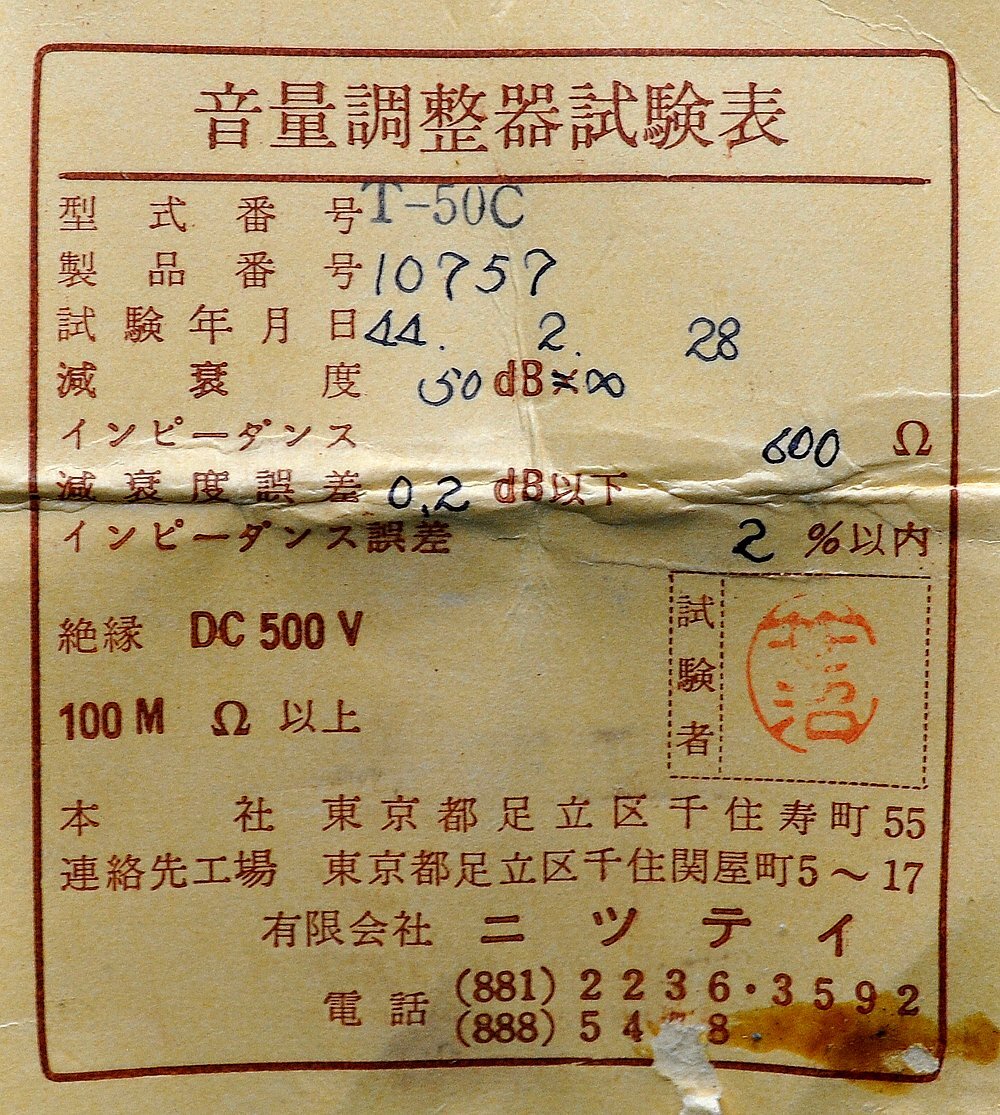 日本低周波研究所・ニッテイ T-50C アッテネータ (50dB/600Ω) [管理:SA1511]