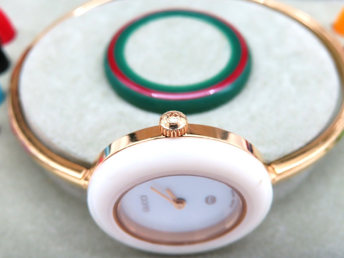 1円 グッチ 11/12 GP ホワイト文字盤 レディース 稼働 QZ ケース 保 替えベゼル 26318 KNRS