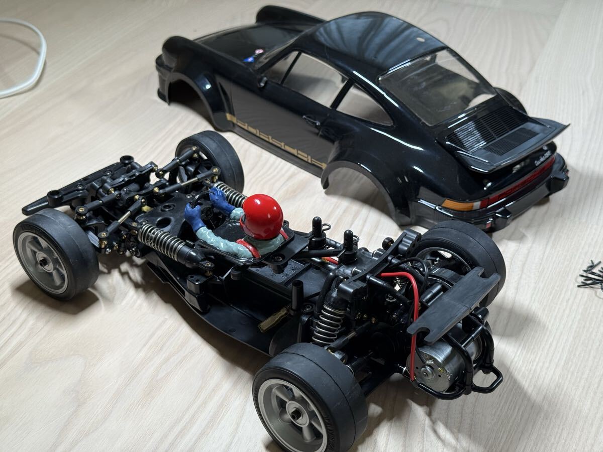 写真のもので全てです。モーター付き。サーボ、アンプ、受信機、バッテリーは付きません。サーボホーンは付いています。ヴァイアントクレマー等のボディデカールは付属しません。綺麗な黒に塗られた状態です。