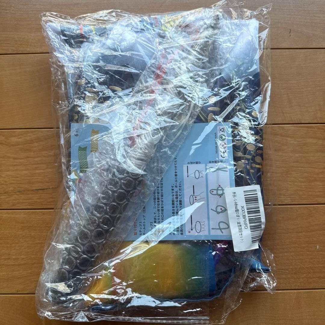 【鯉のぼりセットの内容】: 吹流し1M、黒鯉1M、レッド鯉0.7M、青鯉0.5M、伸縮ポール(最大2M 収納0.26M)、ロープ、日本語説明書カード。