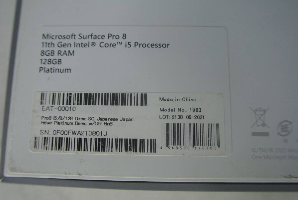 Surface Pro 8 EAT-00010[プラチナ] Core i5-1135G7 2.4GHz 4コア/8GB/SSD128GB/2880x1920/Win11/Office2021/メーカー展示美品/激安