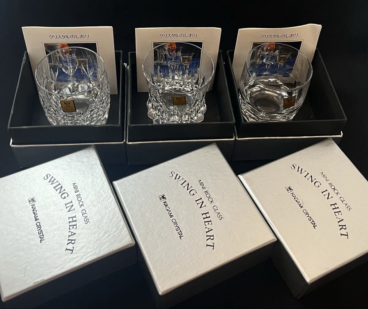 カガミクリスタルのミニロックグラス3客セットです。