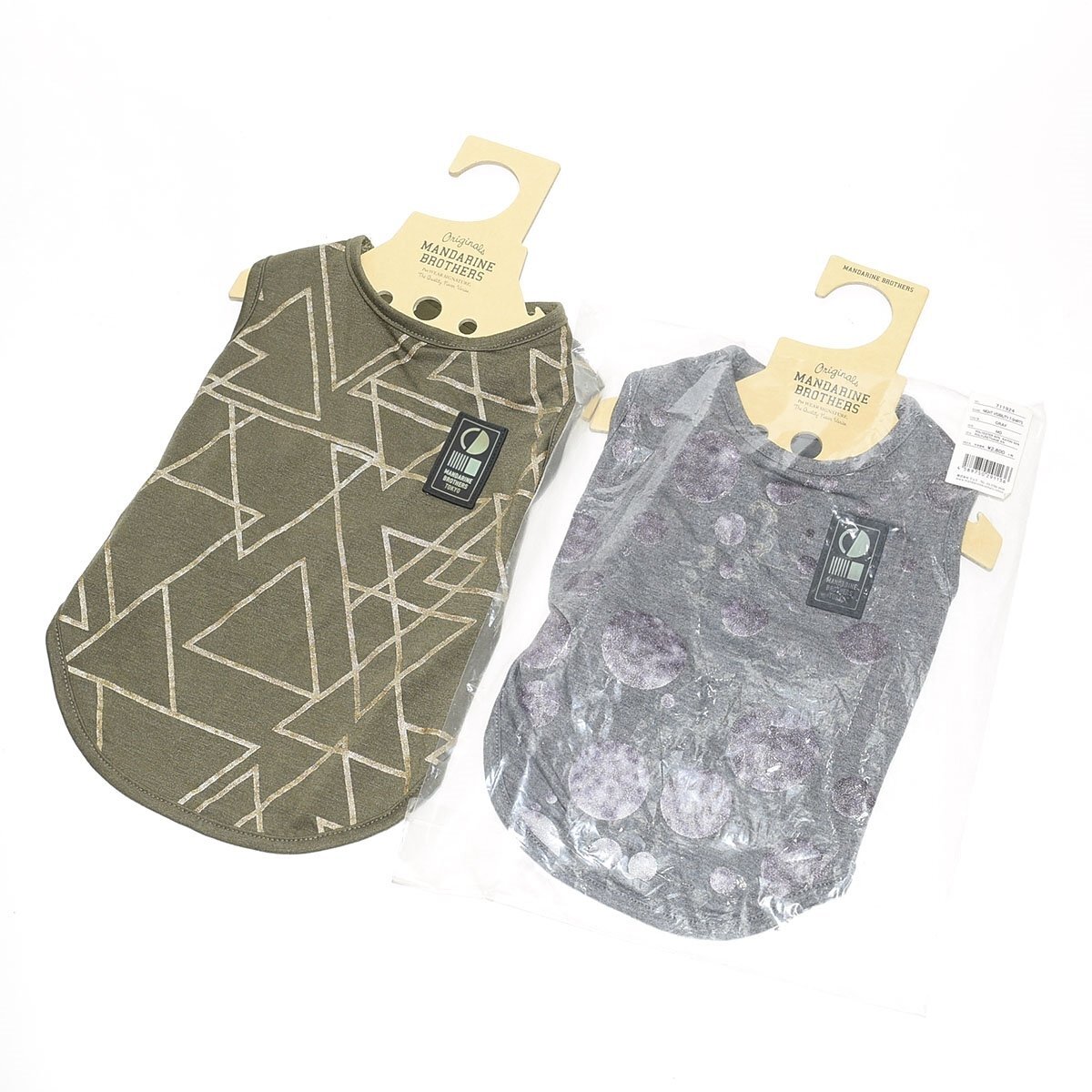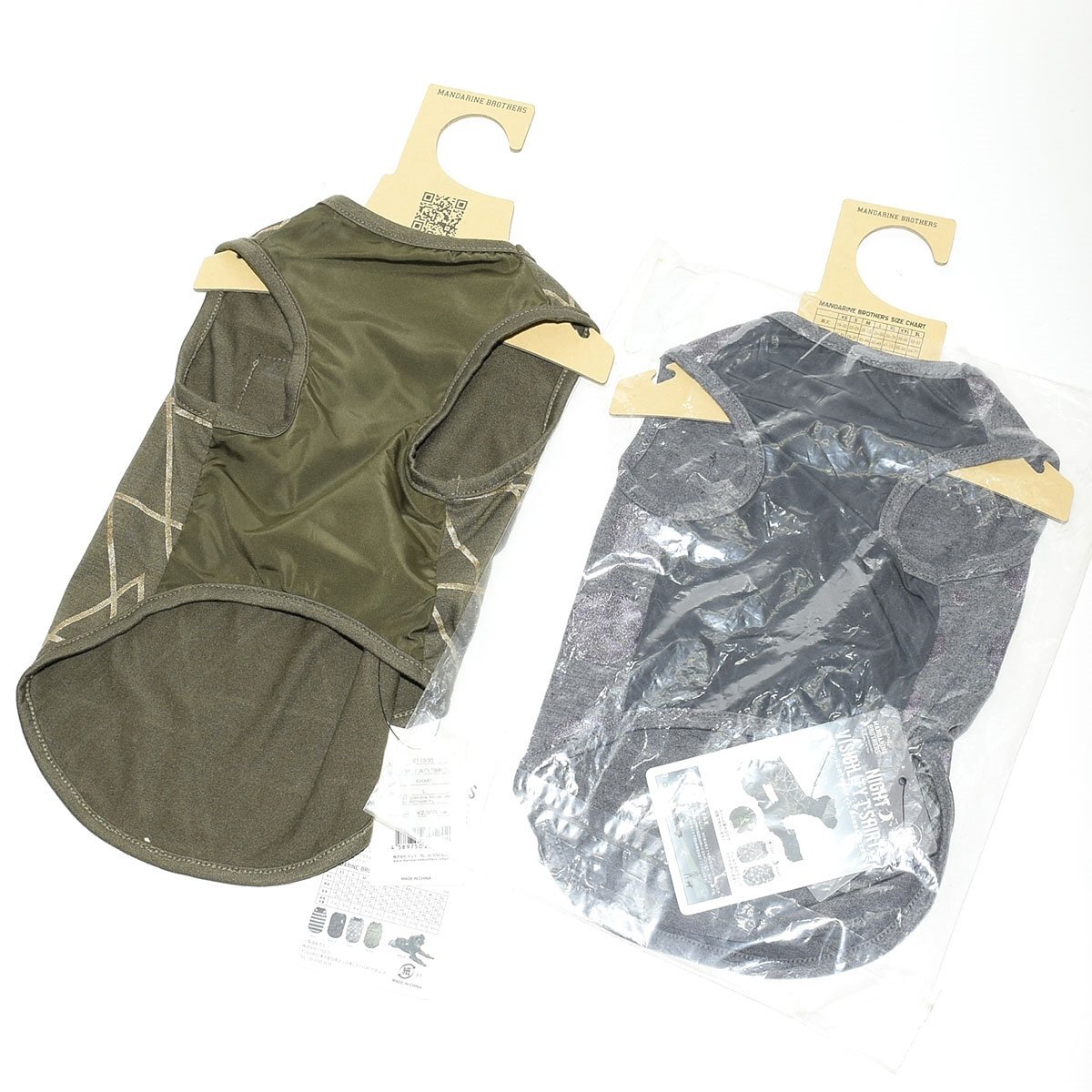 ▼566790 未使用品 MANDARINE BROTHERS マンダリンブラザーズ 犬の服 小型犬用 MD・L2着セット 反射プリント付きTシャツ グレー カーキ